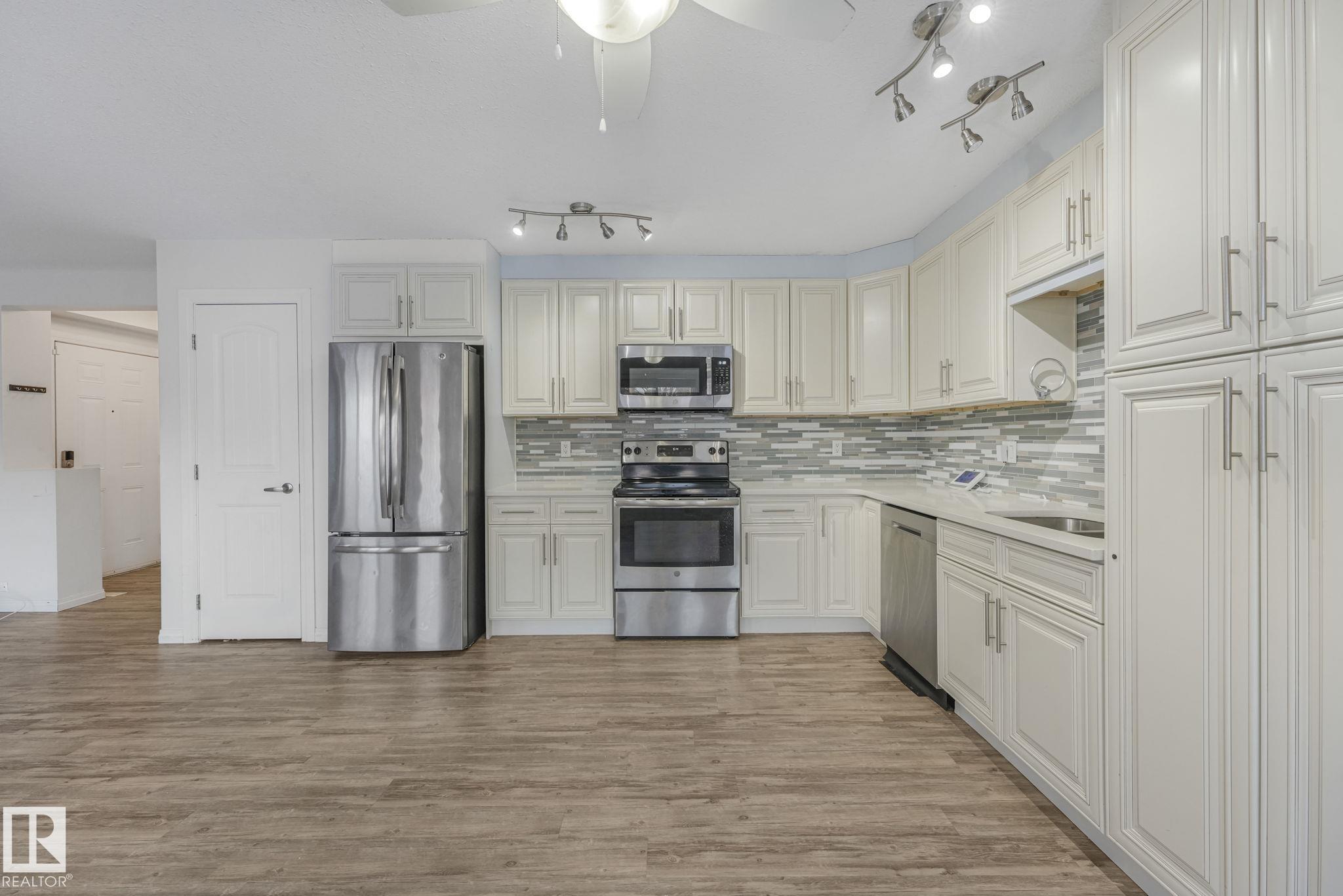 Charming and well maintained 2-storey self-managed condo townhouse in Beacon Heights offering over 1,041 sq. ft. of comfortable living space and condo fees of only $200/m. The bright and open main floor features a large kitchen with newer cabinets, sleek countertops, newer stainless steel appliances ,a dining area, and spacious living room with deck access. A convenient 2-piece bathroom with laundry completes the main level. Upstairs with a spacious primary bedroom, two additional bedrooms, and a 4-piece bathroom. The finished basement adds more versatility with flexibility of a fourth bedroom or living area, complete with a kitchenette with Microwave, sink and fridge, and 3-piece bathroom--perfect for hosting. There are 2 paved parking spaces and additional street parking in the front. This home is ideal for first-time buyers or investors looking for a property with potential and a practical layout. MLS®: E4471577 - Beacon Heights 2 Storey $299,000