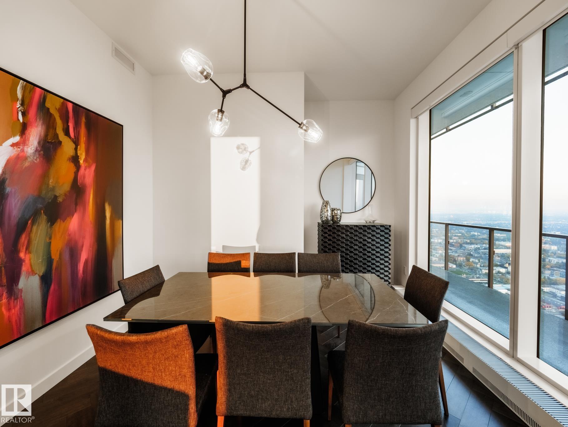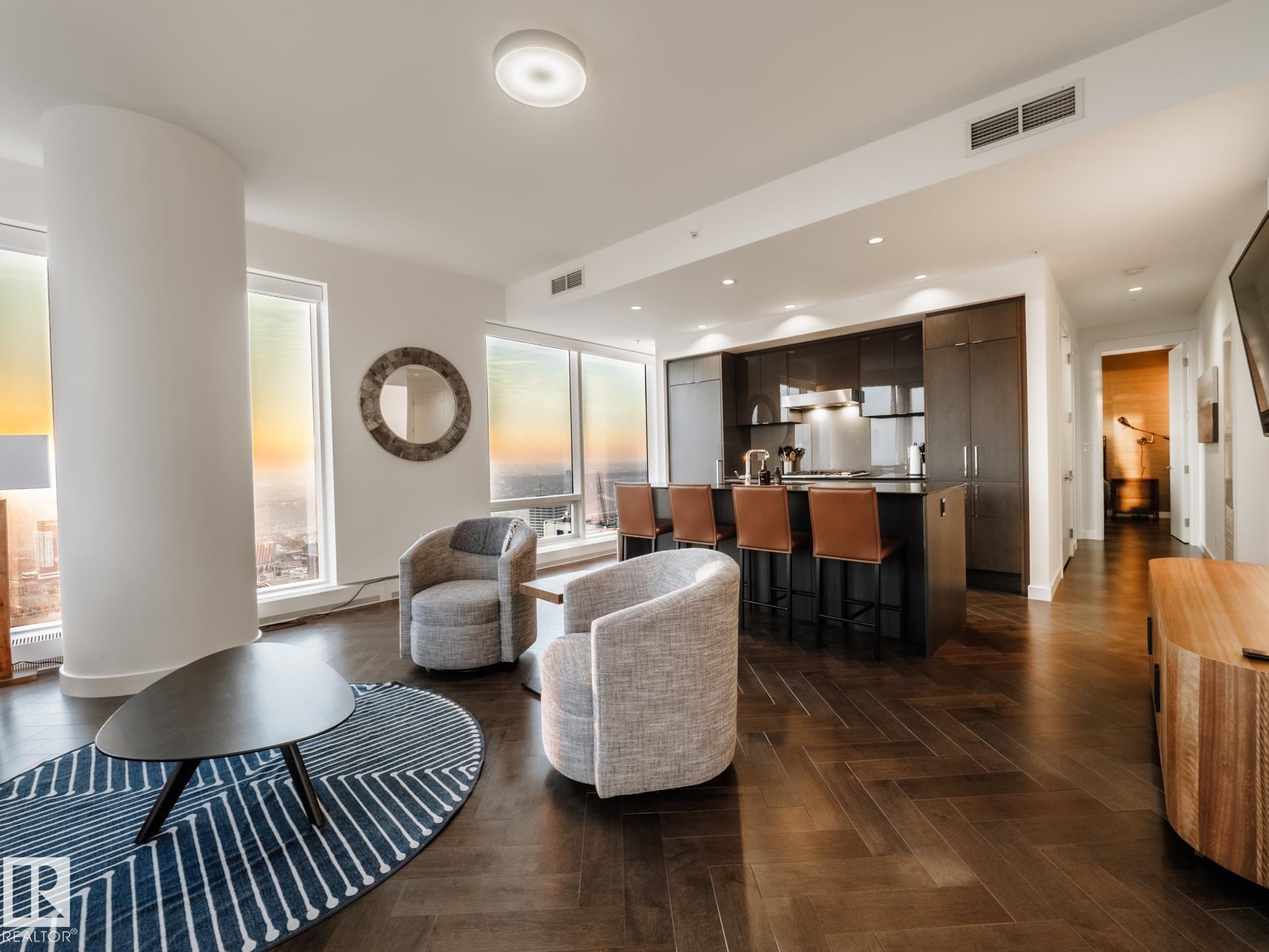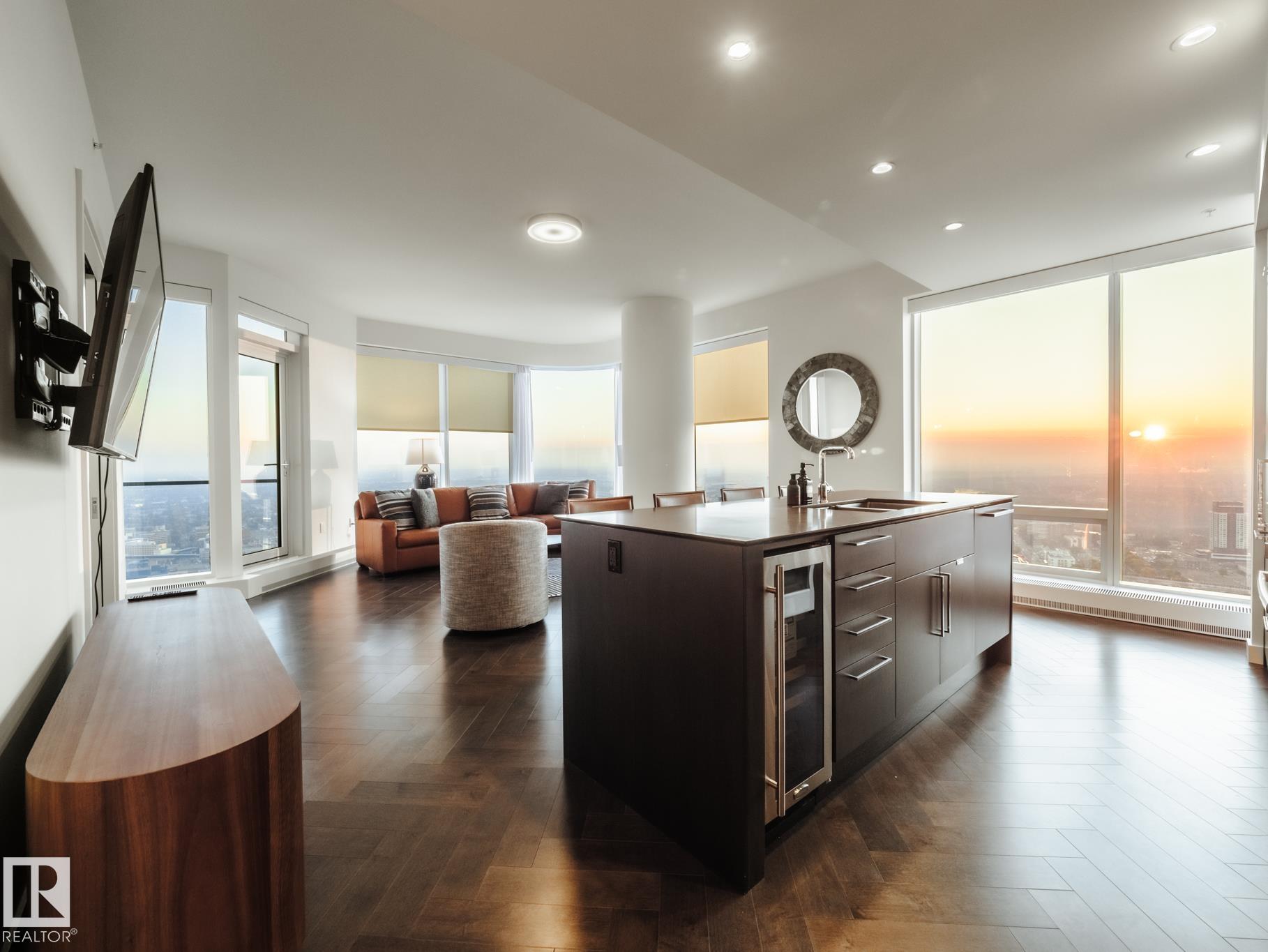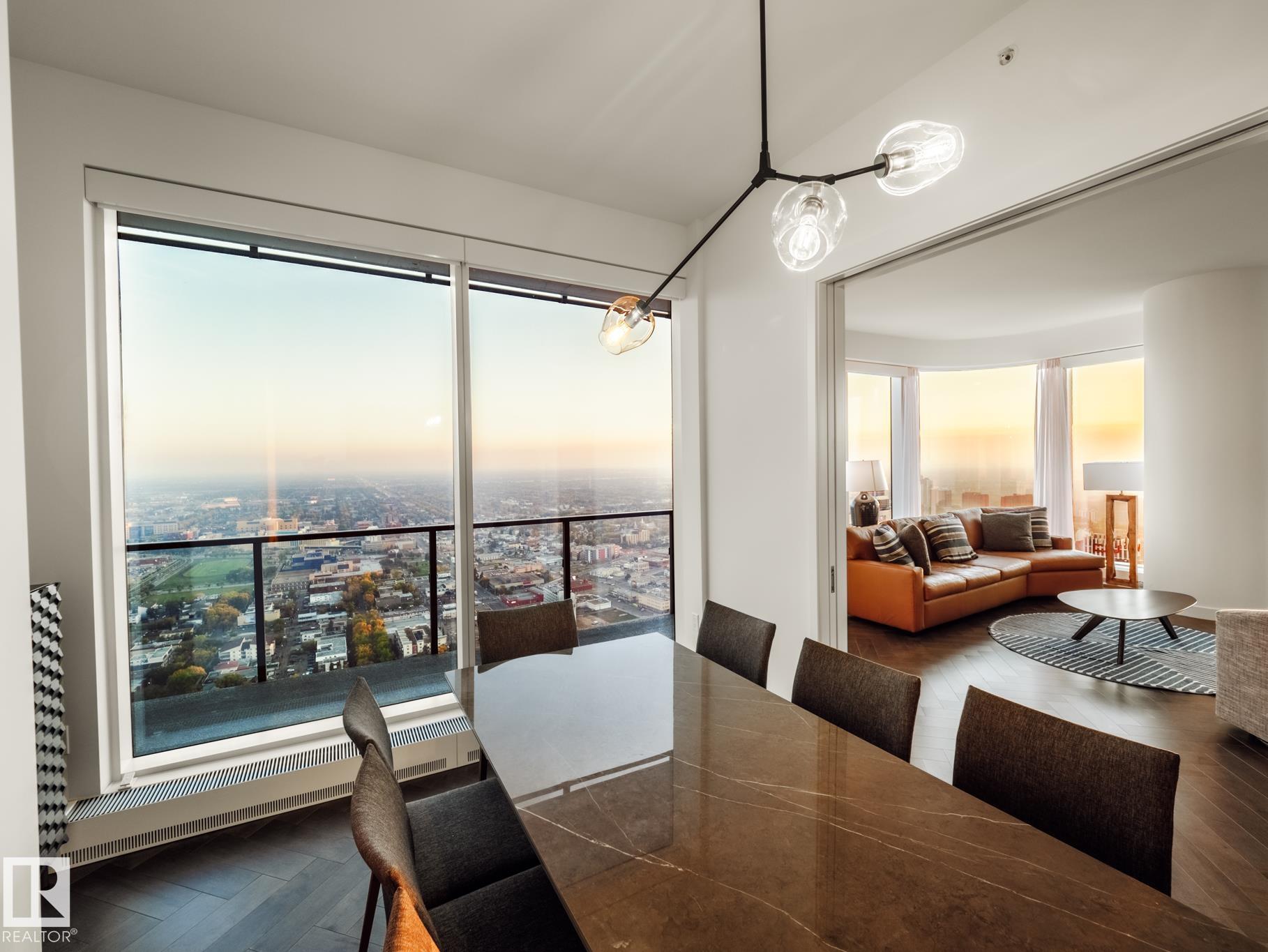 EXCLUSIVE 44TH FLOOR SUITE BOASTING PREMIUM DESIGNER FINISHES....SPECTACULAR PANORAMIC VIEWS....ARCHITECTURAL PERFECTION....HERRINGBONE LAID HARDWOOD FLOORS....WHEN NOTHING BUT THE BEST WILL DO...~!WELCOME HOME!~ First steps into your new LIFESTYLE; perfect foyer leads towards the HEART of the condo. Spectacular kitchen, high end appliances w/ built in wine fridge, and a warm modern flavour. CURTAIN WALL GLASS is everywhere * custom powered window treatments lets you decide on the birds eye city view or opulence exuding inside the unit! The living space falls nothing short of spectacular. The north wing has a dining room w/ views for days. Den/flex room on east side separates the primary bedroom; and yes it has a large walk through closet and proper spa/ensuite. What could be a third bedroom is on the west side of the unit( also well appointed!) all perched on top of the ice district, JW MARRIOT, comes w/ concierge, access to pool & ARCHETYPE gym, dinning, shopping & more. Second parking stall optional* MLS®: E4464724 - Downtown (Edmonton) Single Level Apartment $949,702