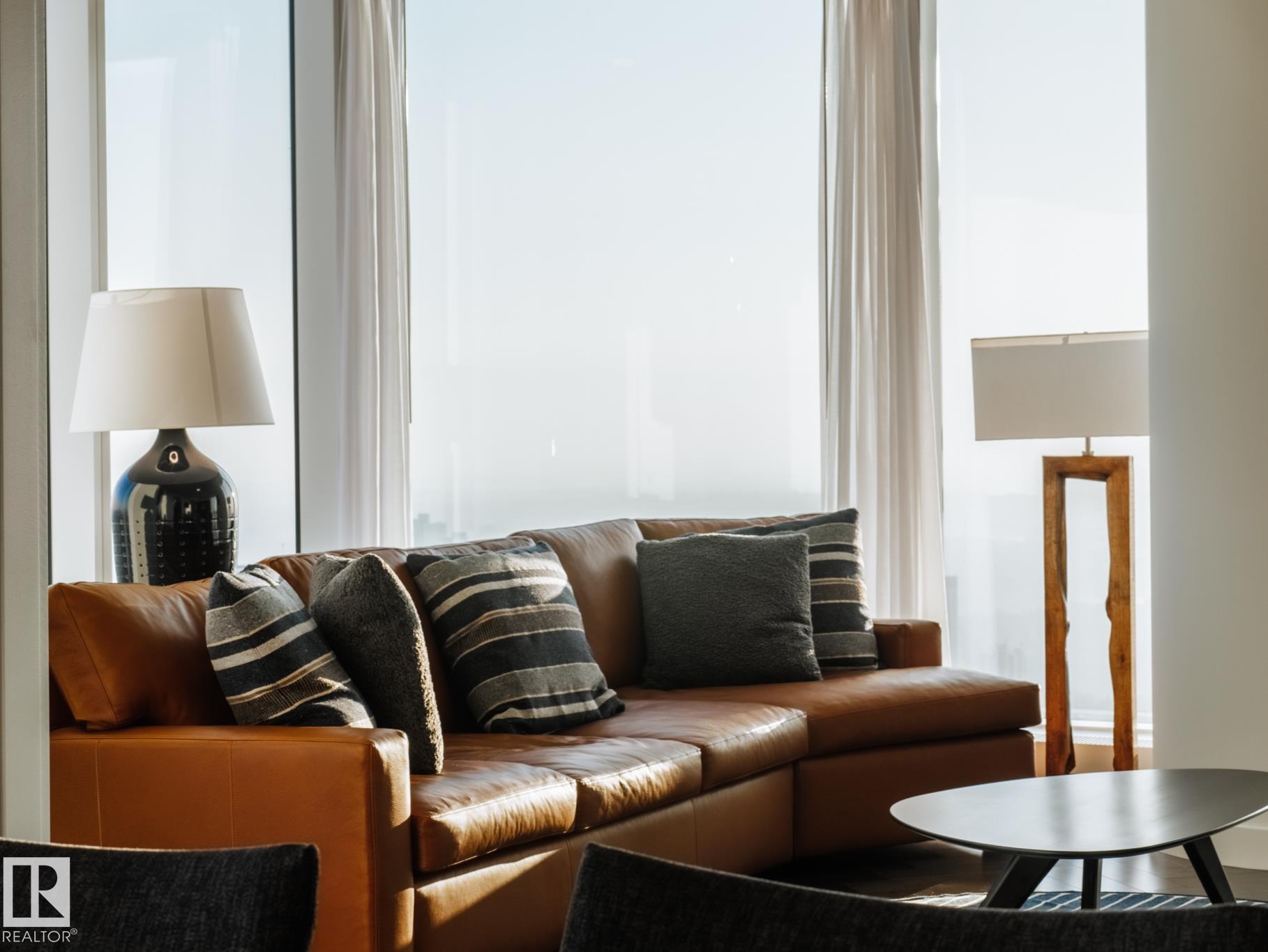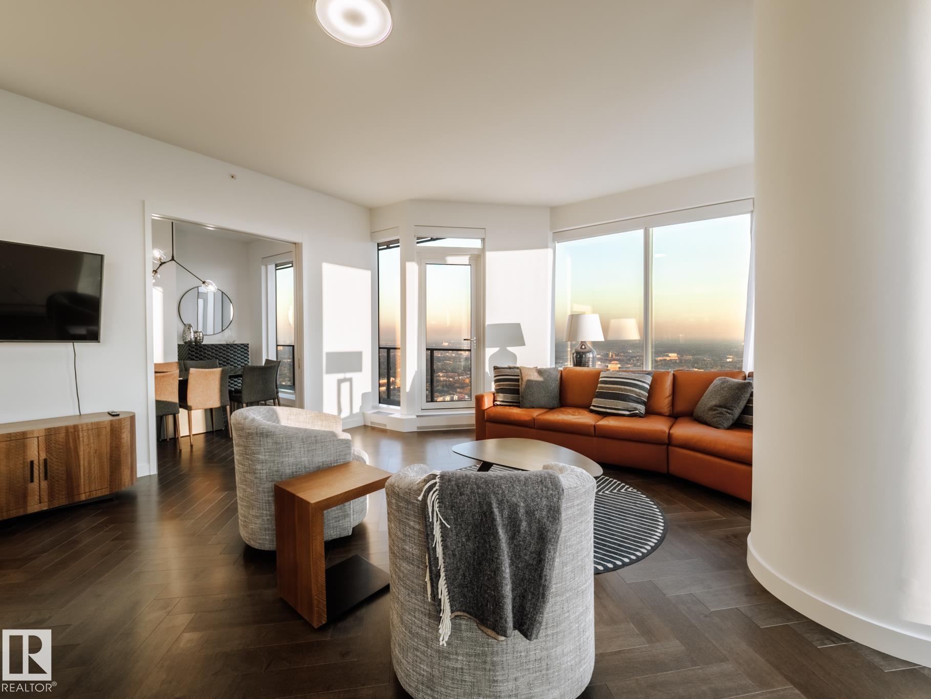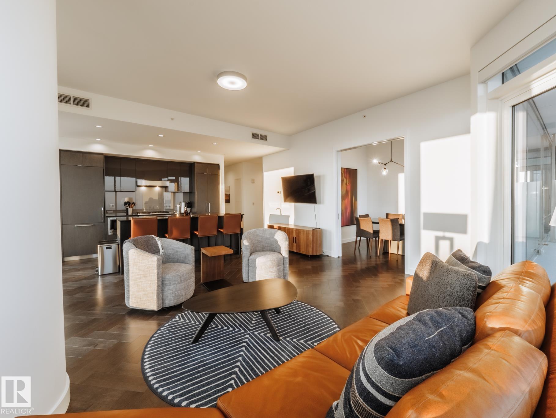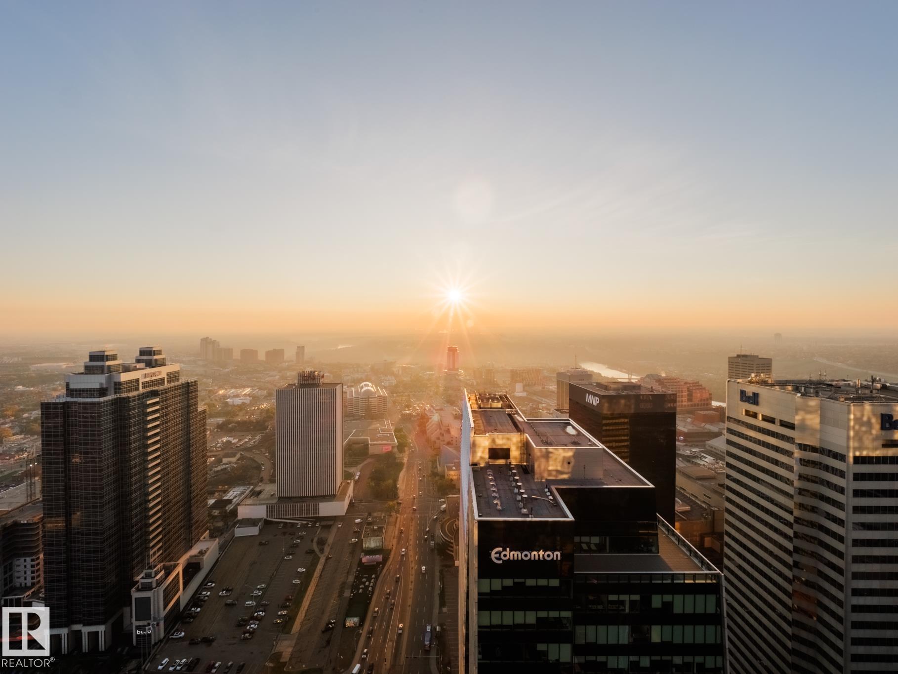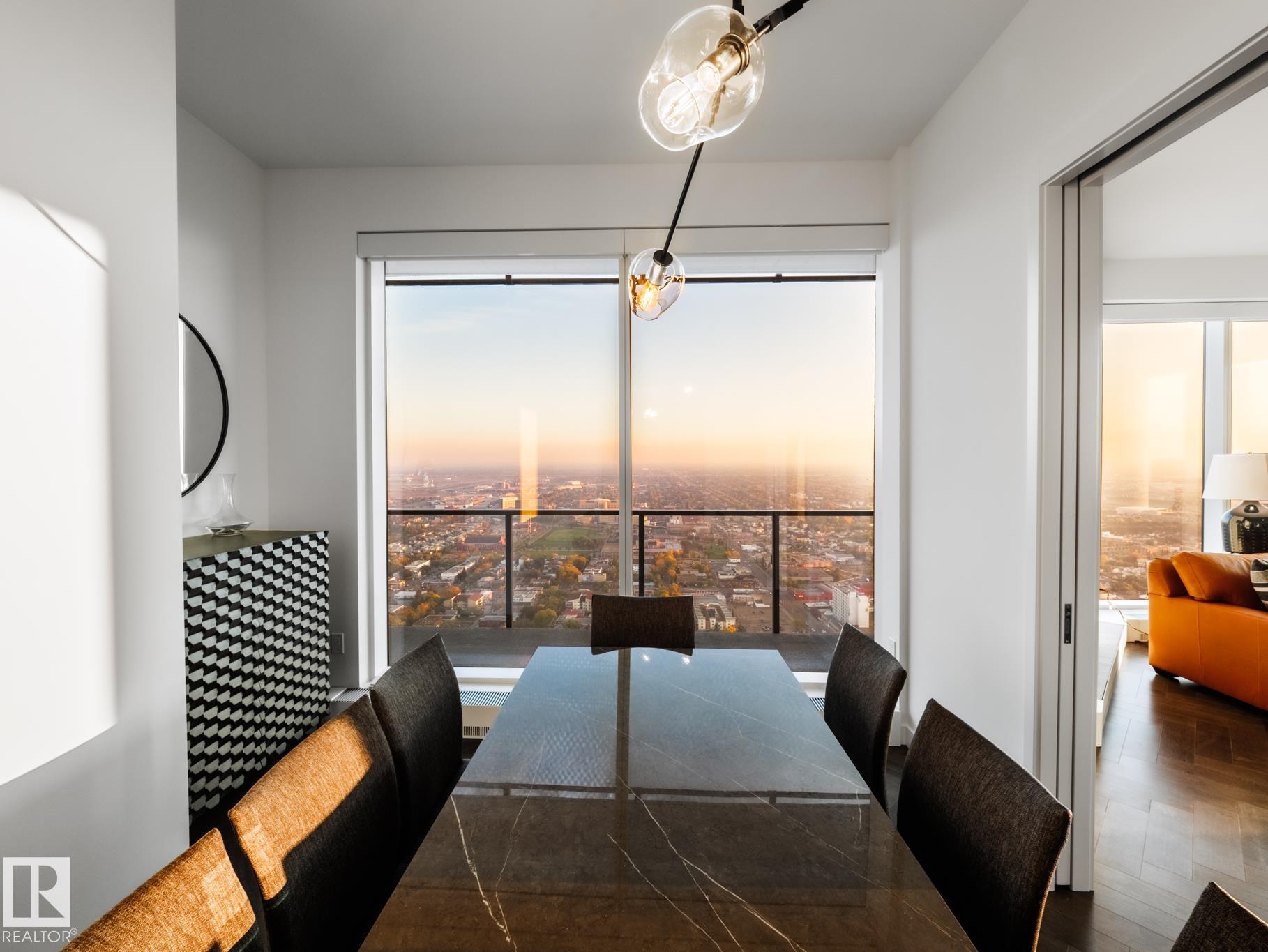 EXCLUSIVE 44TH FLOOR SUITE BOASTING PREMIUM DESIGNER FINISHES....SPECTACULAR PANORAMIC VIEWS....ARCHITECTURAL PERFECTION....HERRINGBONE LAID HARDWOOD FLOORS....WHEN NOTHING BUT THE BEST WILL DO...~!WELCOME HOME!~ First steps into your new LIFESTYLE; perfect foyer leads towards the HEART of the condo. Spectacular kitchen, high end appliances w/ built in wine fridge, and a warm modern flavour. CURTAIN WALL GLASS is everywhere * custom powered window treatments lets you decide on the birds eye city view or opulence exuding inside the unit! The living space falls nothing short of spectacular. The north wing has a dining room w/ views for days. Den/flex room on east side separates the primary bedroom; and yes it has a large walk through closet and proper spa/ensuite. What could be a third bedroom is on the west side of the unit( also well appointed!) all perched on top of the ice district, JW MARRIOT, comes w/ concierge, access to pool & ARCHETYPE gym, dinning, shopping & more. Second parking stall optional* MLS®: E4464724 - Downtown (Edmonton) Single Level Apartment $949,702