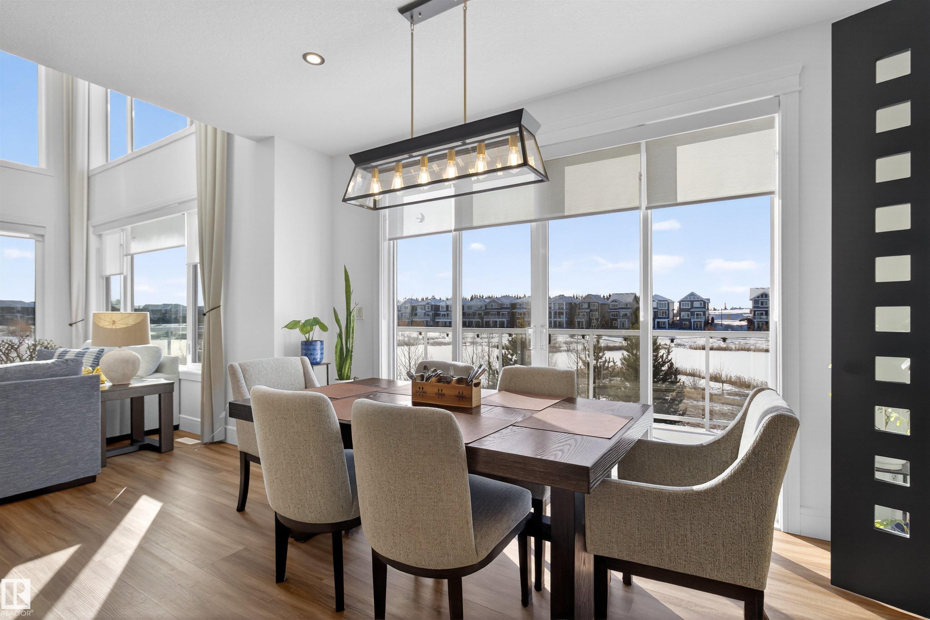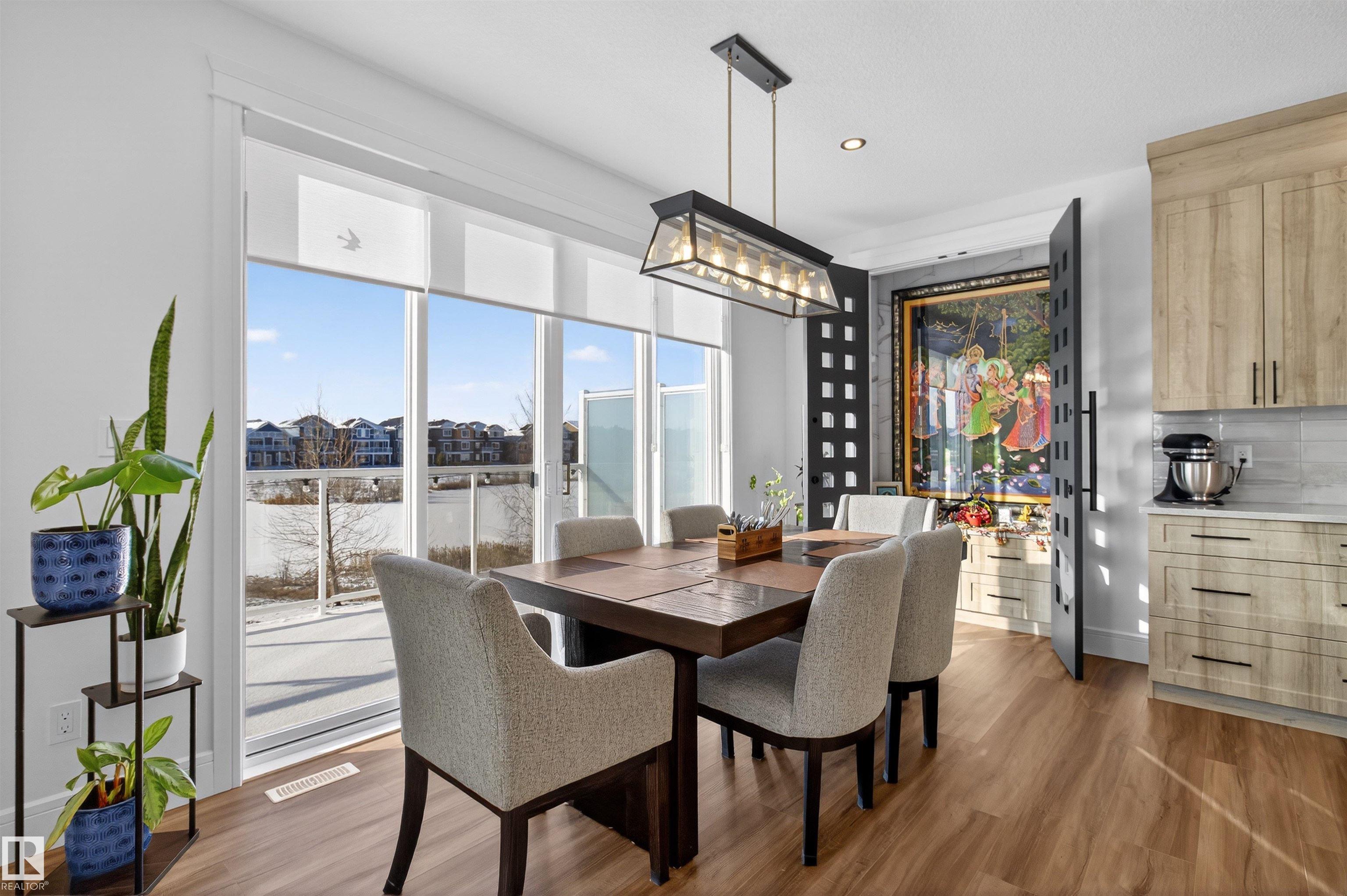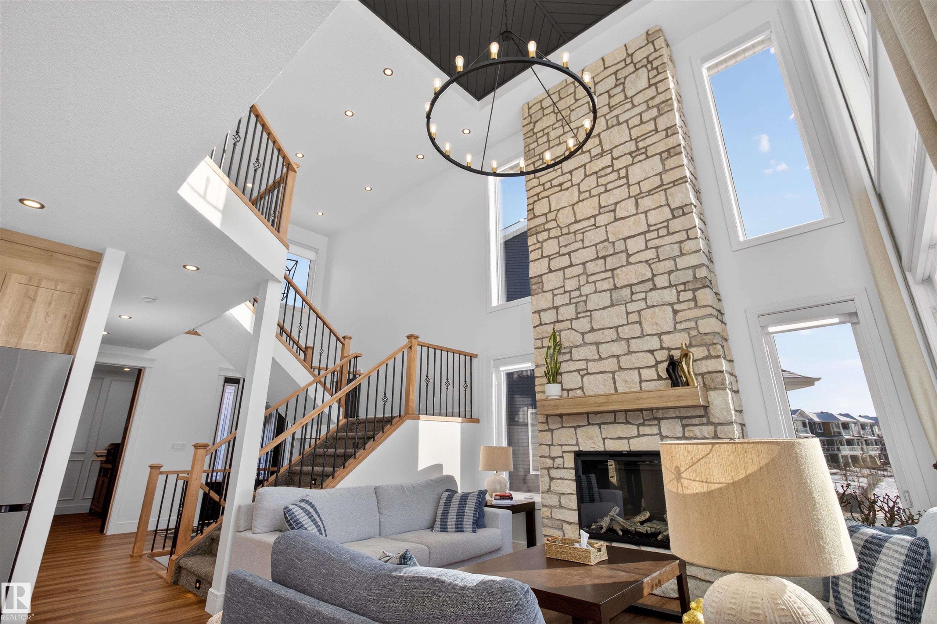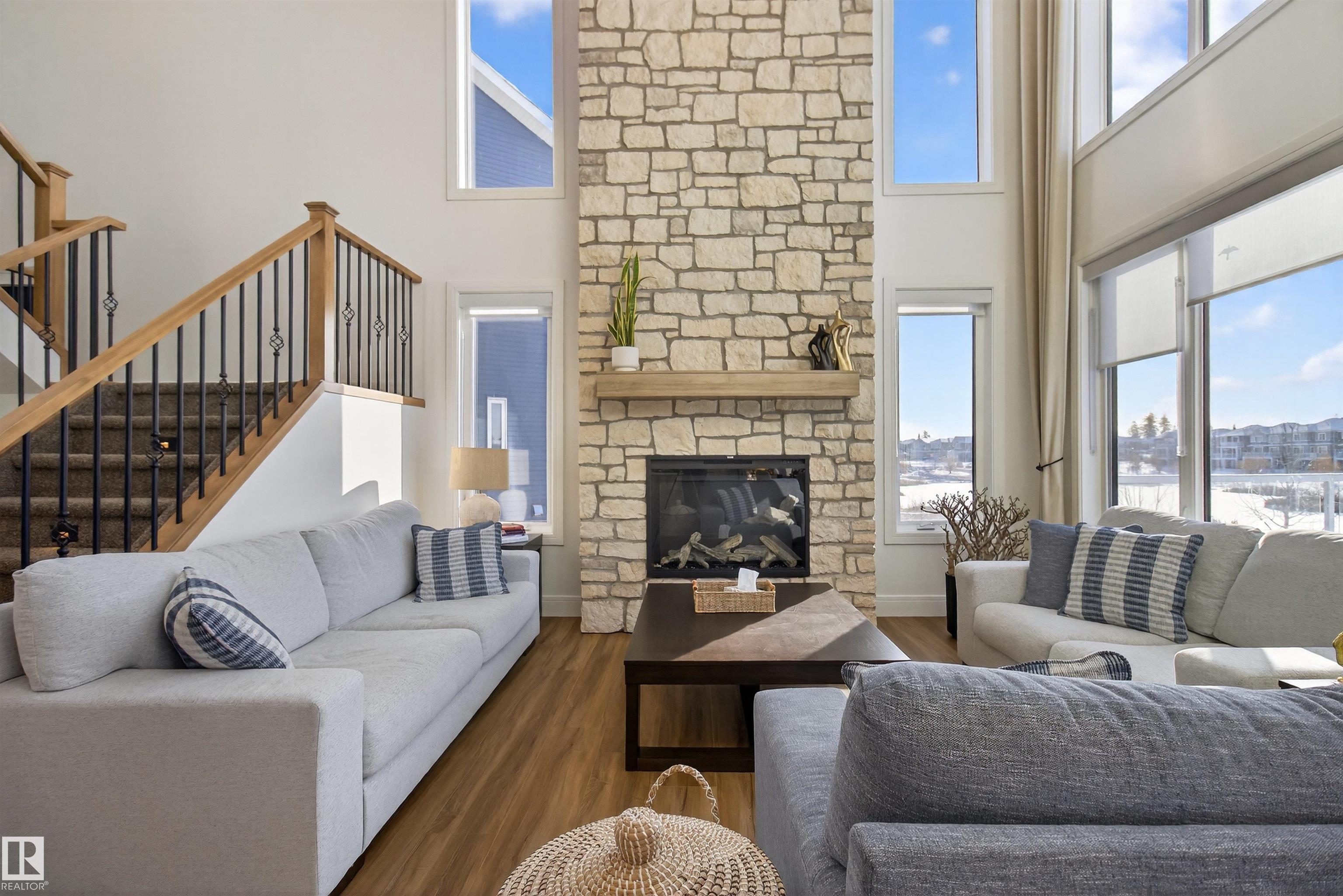 GORGEOUS CUSTOM BUILT 2 STOREY WALKOUT! BACKING THE POND! Welcome to Glenridding Ravine in south Edmonton. Prime location situated in a quiet cul-de-sac. Featuring an open concept with 2500 sq ft plus a FULLY FINISHED walkout basement. Modern design with HIGH QUALITY finishings throughout! Huge entry way, hardwood floors & spacious living room with soaring ceilings. Stunning stone-featured floor to ceiling fireplace! An abundance of windows to enjoy the views! CHEF'S DREAM KITCHEN! Beautiful cabinetry, Quartz countertops, highend appliances & a walk-through pantry. Main floor bedroom, 3 piece bathroom, mud room and dog wash. Large dining area & a massive deck that looks over the pond. Upstairs are 3 bedrooms, a 5 piece bathroom, large laundry room and a LUXURIOUS 5-PIECE ENSUITE in the Primary Bedroom plus huge walk-through closet! Entertain your friends in the basement Rec Room! AWESOME GYM, & 3 piece bathroom. LOVE THE PRIVATE BACKYARD! Double attached garage & beautiful curb appeal! OUTSTANDING VALUE!! MLS®: E4484541 - Glenridding Ravine 2 Storey $938,500