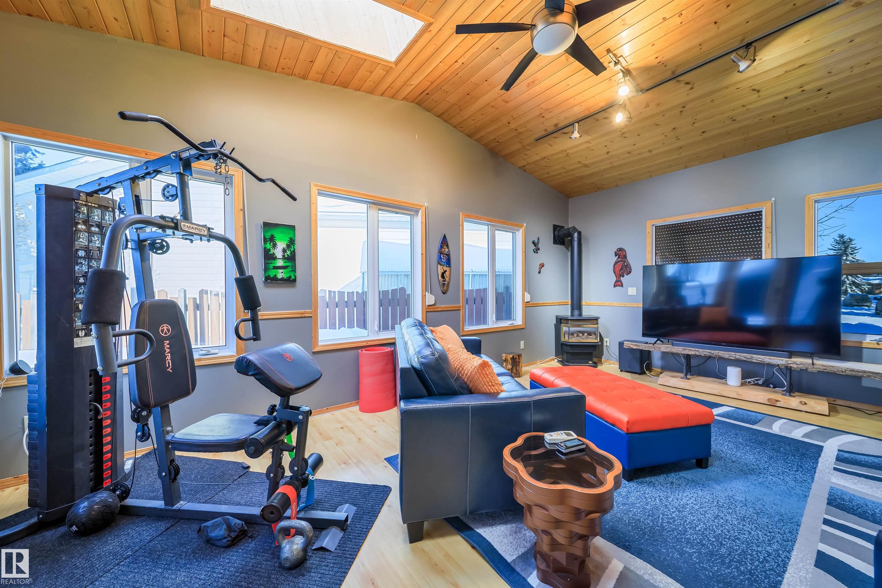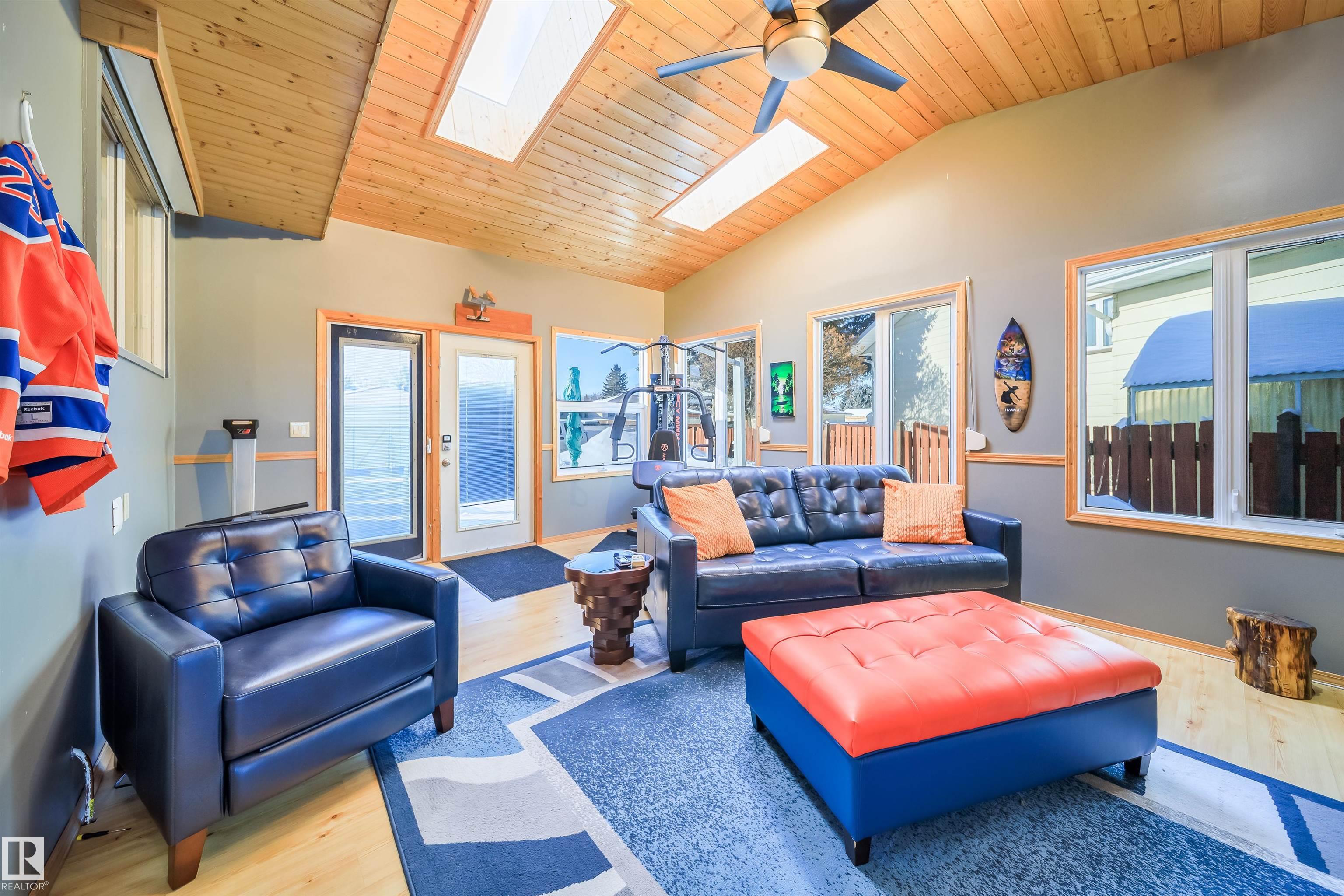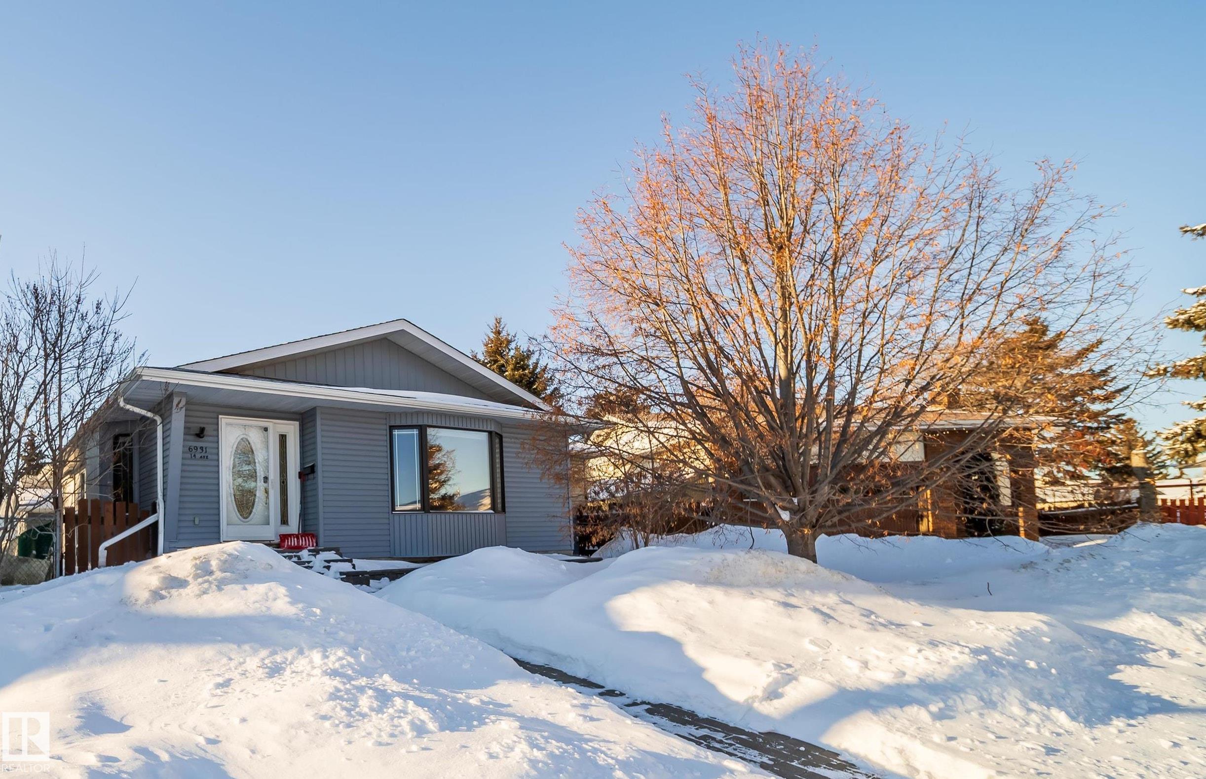 This 4 BED, 3 BATH BUNGALOW is on a quiet street, has OVER 2500 SqFt of finished living space and a LARGE BACK YARD! Walking distance to MENISA Elementary and Park. The spacious living room room is cozy with a gas fireplace and large bay window. Tons of oak cabinets, counter space and quality GE + BOSCH appliances in the kitchen, plus a breakfast nook and formal dining room. The ALL-SEASON SUNROOM is bright with tons of windows and skylights, and warmed by another gas fireplace. 3 generous bedrooms upstairs, with built-in closets, and the primary with 2pc ensuite bath. A huge recreation room downstairs with wood fireplace, 4th bedroom, bath with large shower, laundry room, tons of storage and potential for 5TH BEDROOM. The SOUTH FACING BACKYARD is perfect for entertaining with a large deck, patio stone and firepit. RV parking and a O/S DBL DETACHED HEATED GARAGE, plus storage shed. Upgrades include a newer roof, deck, A/C, and roll shutters. Close to parks and schools and easy access to Anthony Henday. MLS®: E4474479 - Menisa Bungalow $495,000