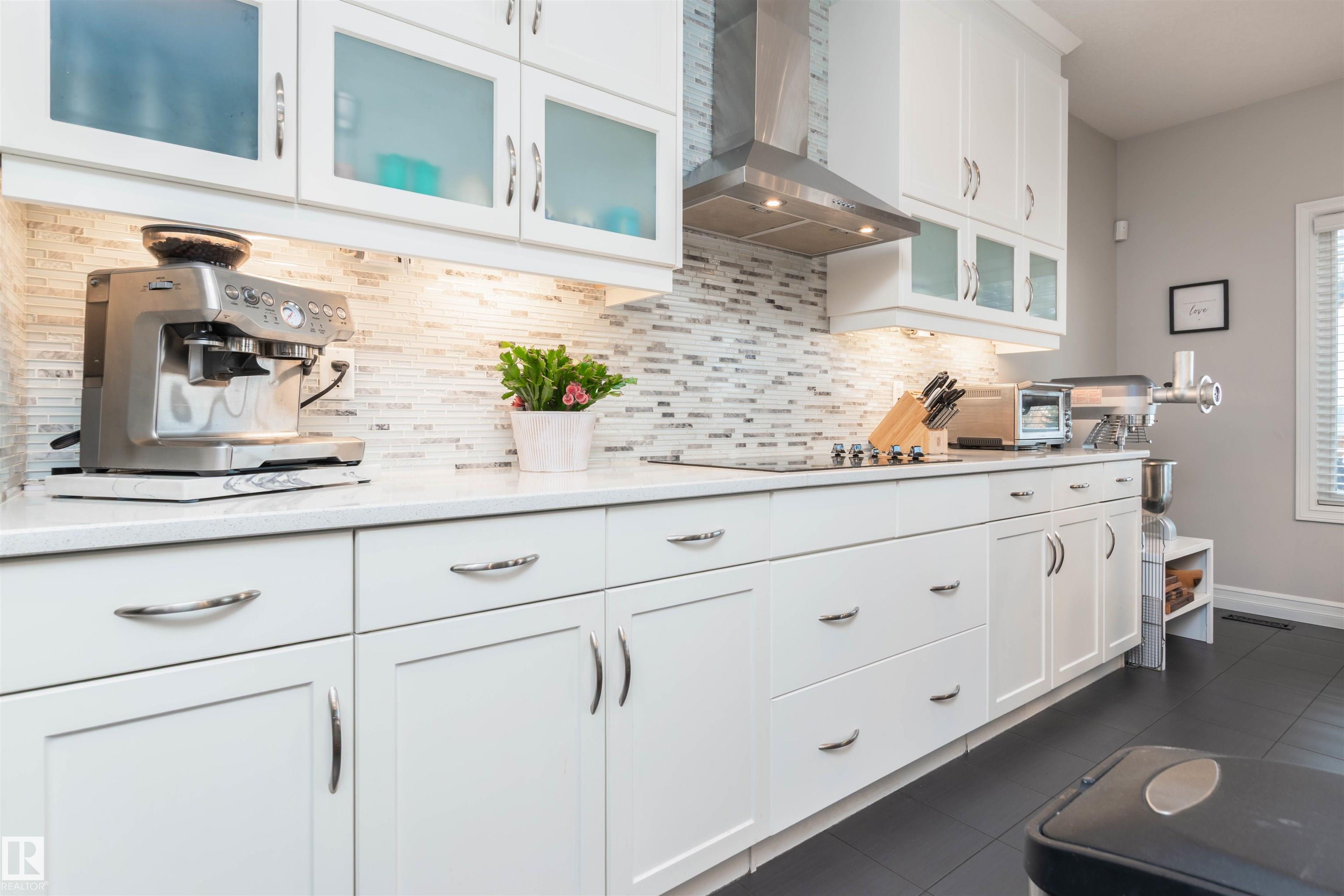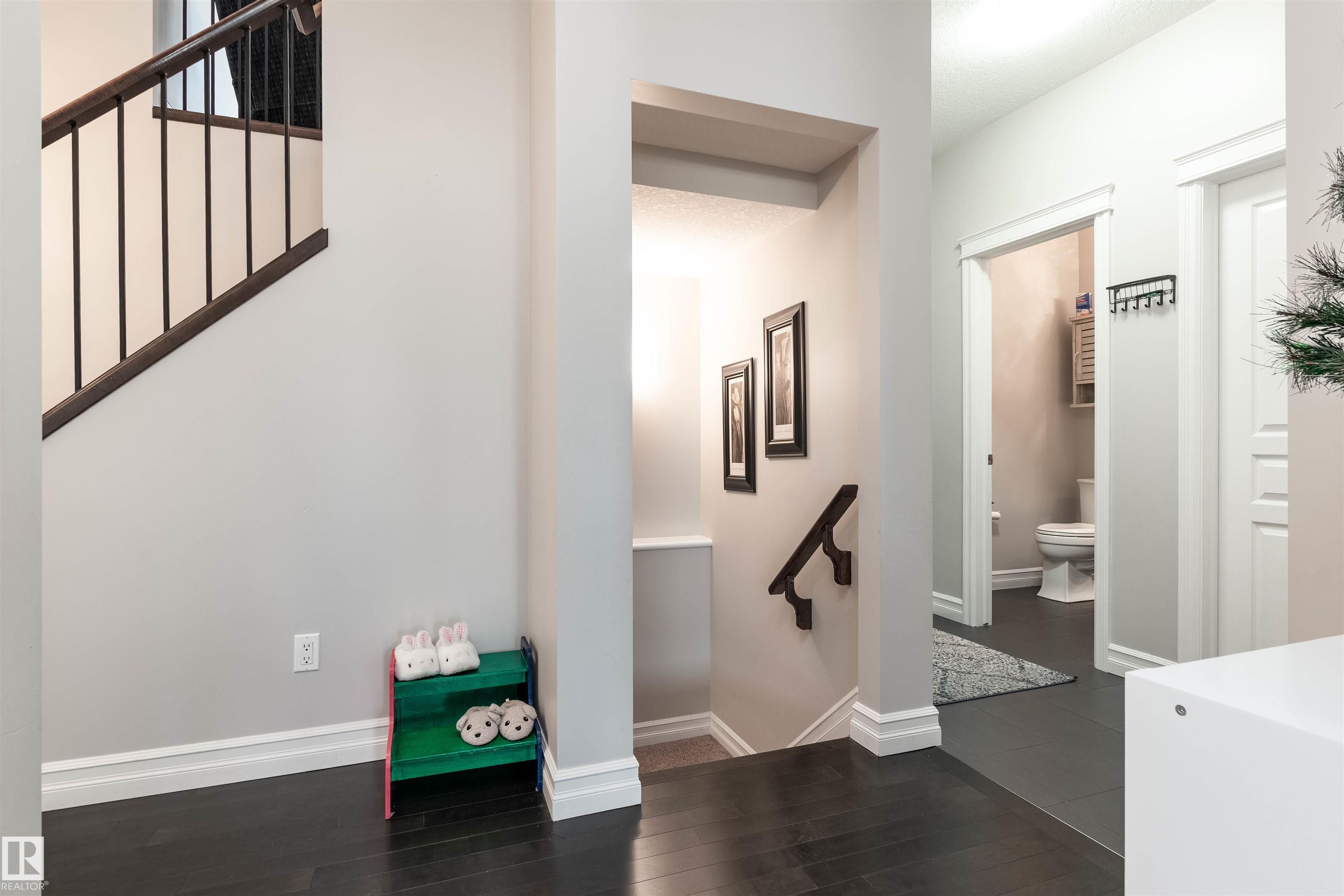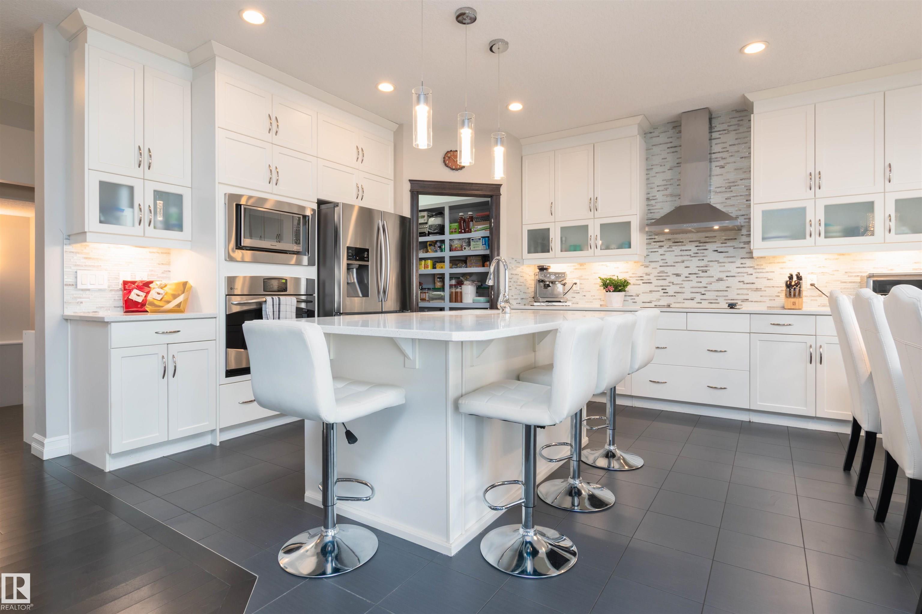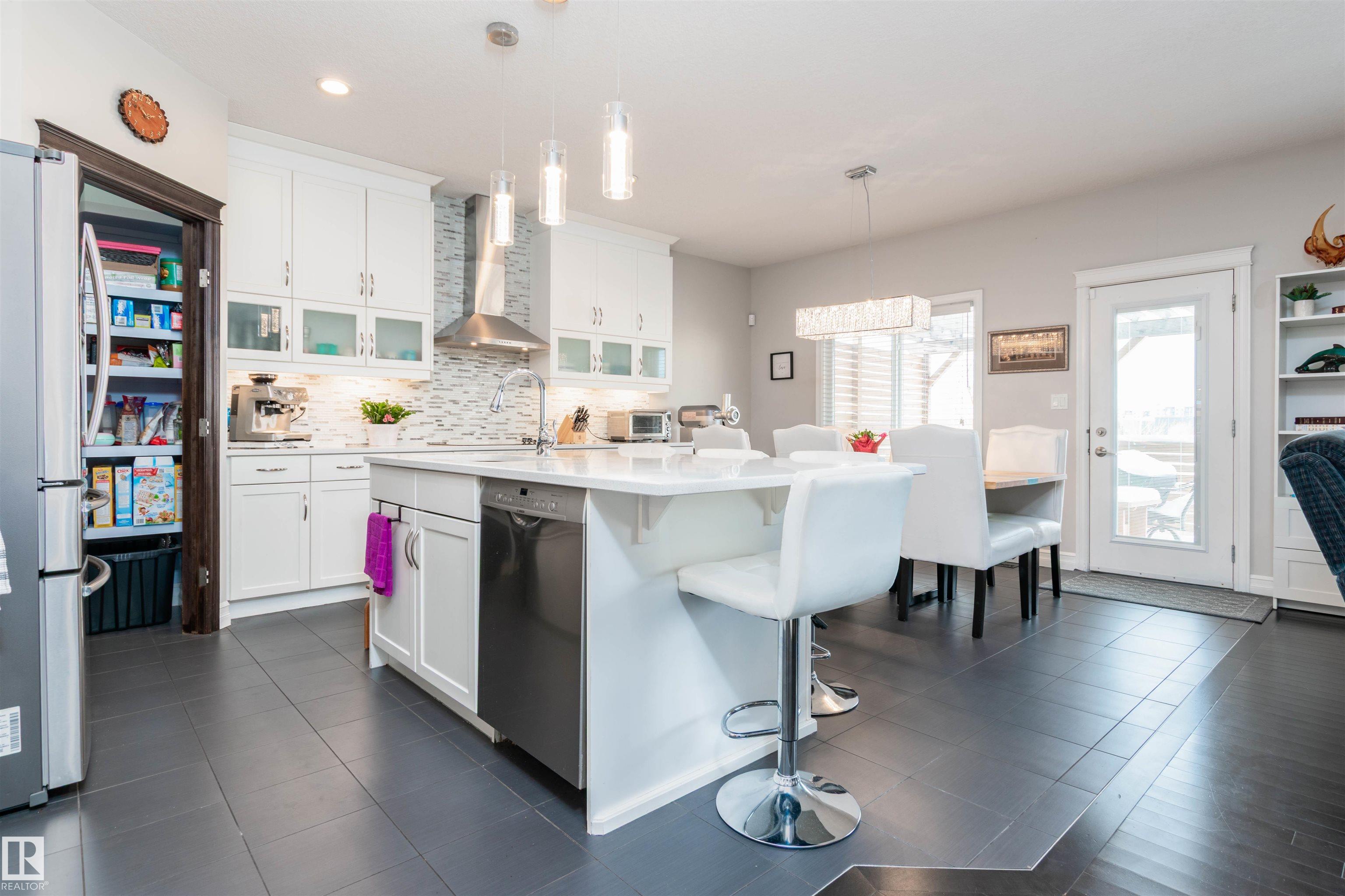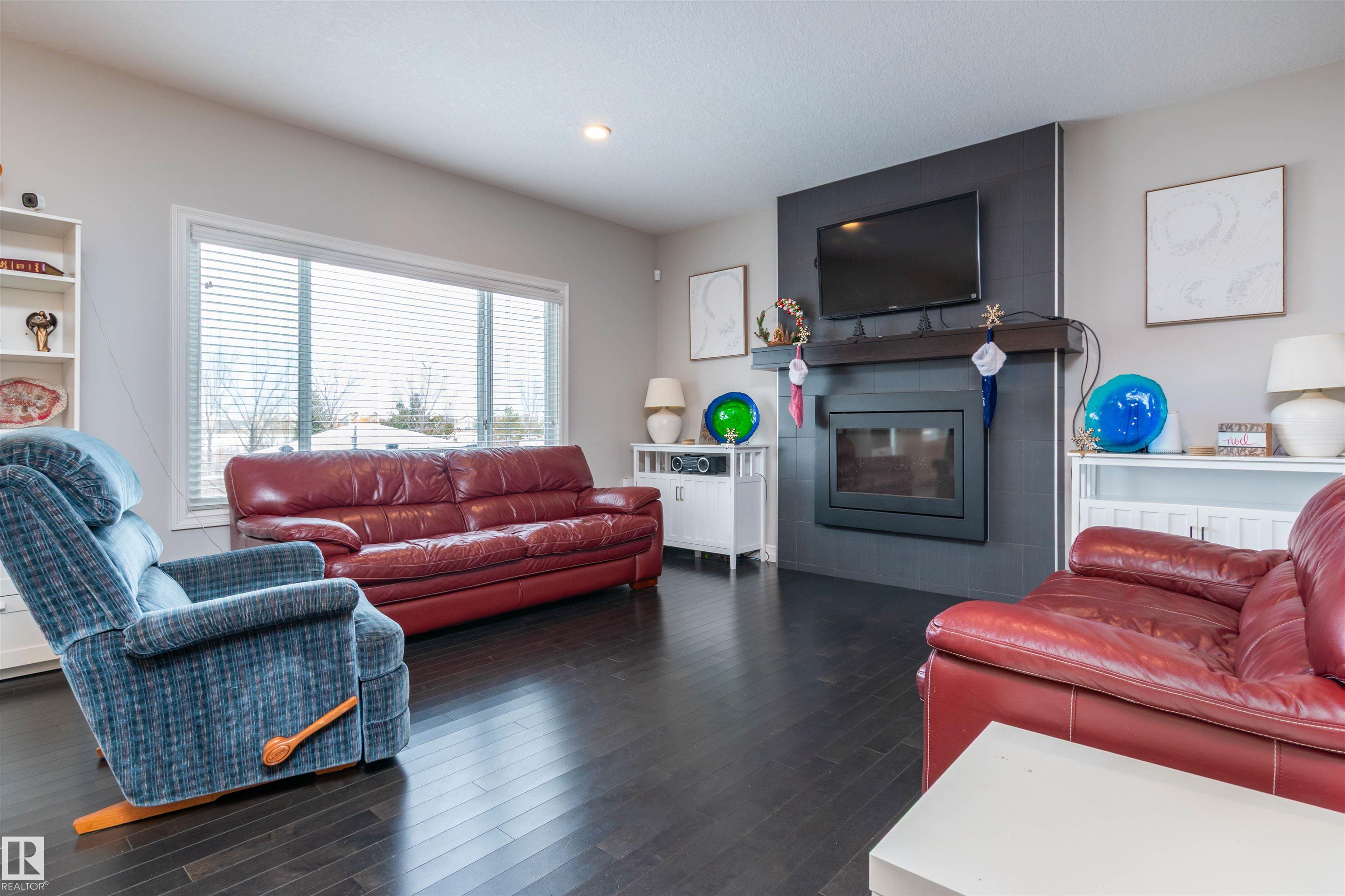 Situated on a HUGE PIE LOT is this GORGEOUS family home! Fronting the pond and trees in one of north Edmonton's most desirable communities! Open concept design offering nearly 2400 sq ft plus a FULLY FINISHED basement! Loaded with natural light and featuring a stunning kitchen with an abundance of custom cabinetry, stainless steel appliances, walk-through pantry and beautiful countertops. Large windows, generous dining area and a spacious living room with hardwood floors & attractive gas fireplace. Main floor flex room/office and powder room. Upstairs is a big Bonus Room, 3 bedrooms, laundry room and a 4 piece bathroom. Vaulted ceilings in the Primary Bedroom, walk-in closet and a LUXURIOUS "SPA-LIKE" ENSUITE! The basement boasts a massive family room, wet bar, 4th bedroom, 4 piece bathroom, utility room & storage space. BEAUTIFUL BACKYARD! Two-tiered deck and stamped concrete patio. Central AC, hot water on demand, and a HEATED GARAGE! Outstanding value!! Visit REALTOR© website for more information. MLS®: E4468232 - Rapperswill 2 Storey $695,000
