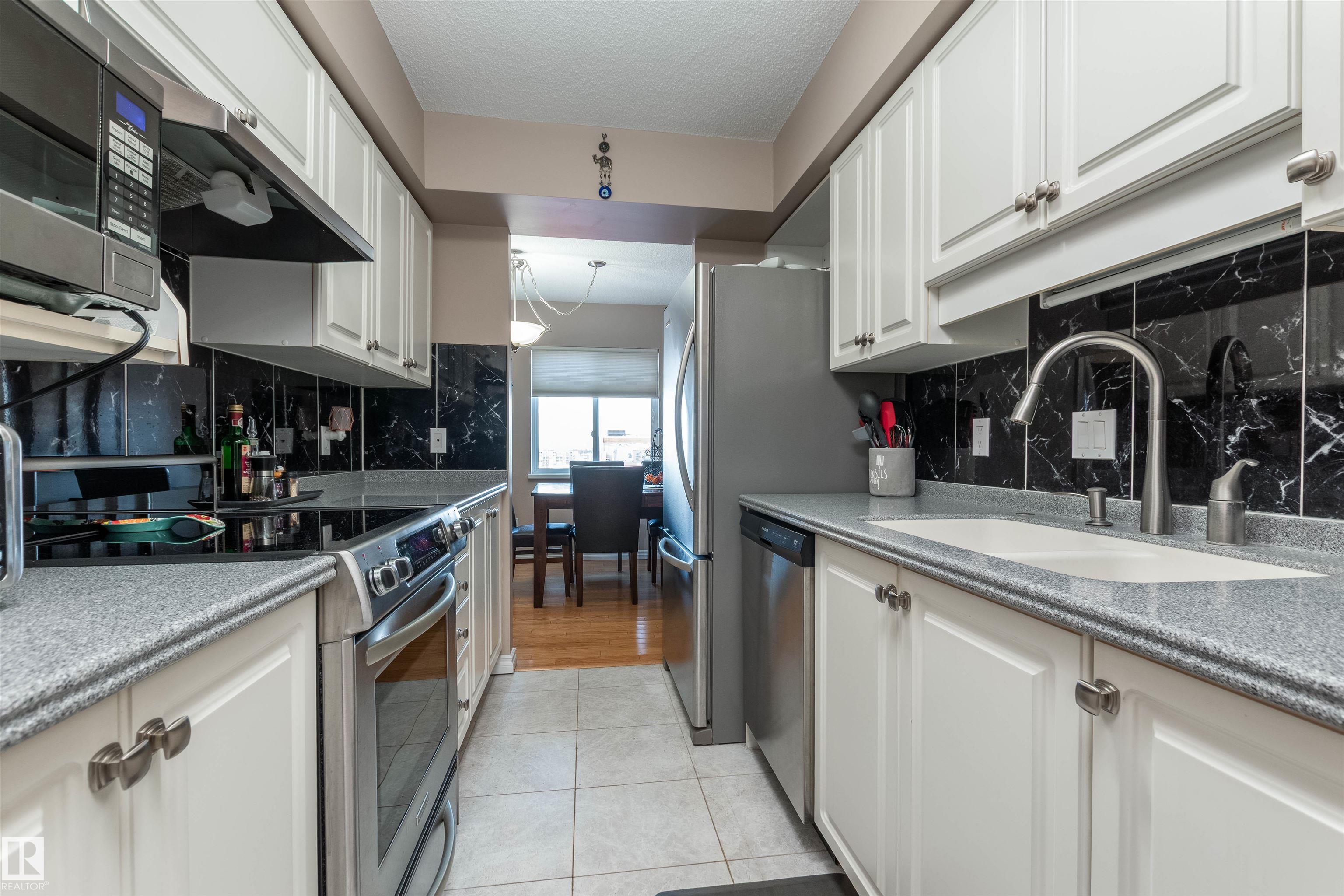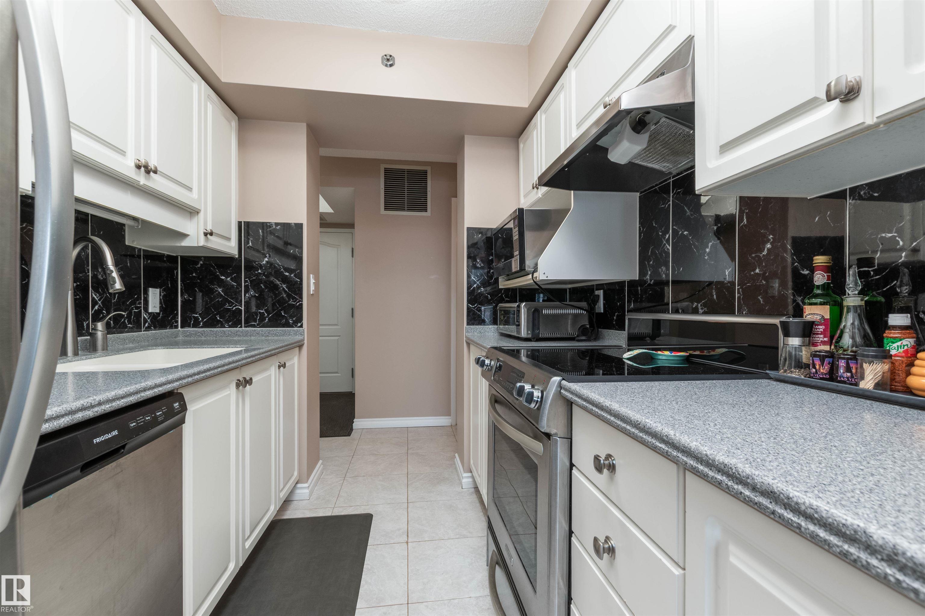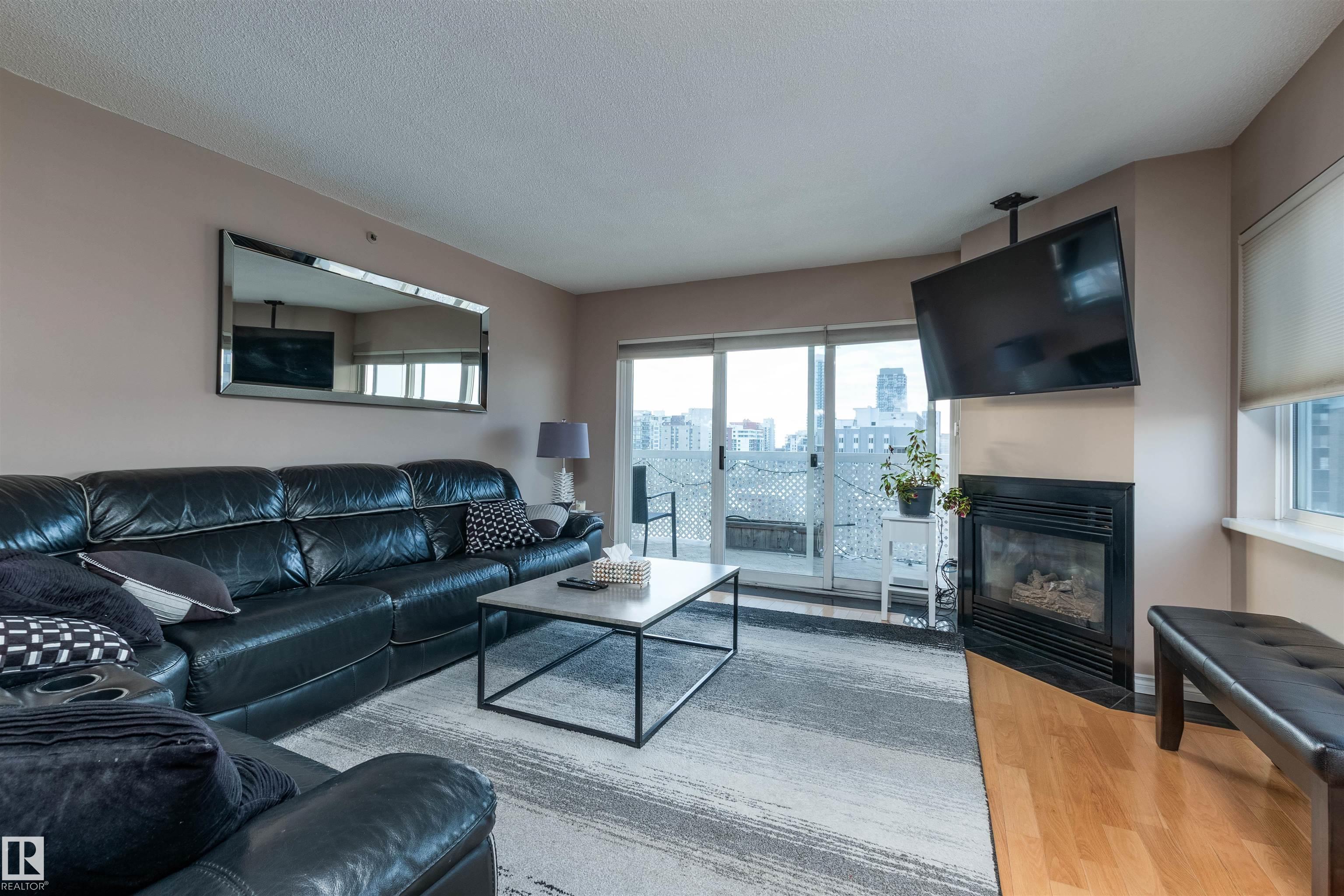 Enjoy the TREELINE & CITY VIEWS from this UPGRADED 2 bedroom condo in Hudson House! Prime location and value with immediate possession available! Only steps from Jasper Avenue and close to various restaurants & cafes, shopping, transit, The River Valley, ICE District, MacEwan University and the U of A. This beauty offers 1172 square feet, lovely kitchen with Newer countertops & stainless steel appliances. Generous dining area & a very spacious and bright living room with engineered hardwood floors, wall unit & gas fireplace for those cozy winter nights. The Primary Bedroom features its own private 3 piece ensuite. Full bathroom and convenient in-suite laundry as well. Enjoy the north & west exposures plus your balcony has a natural gas hook up for bbq outlet. TWO TITLED UNDERGROUND PARKING STALLS! #79 & #95 on P2. A/C through the furnace. Professionally managed building with great amenities including a social room, exercise room, sauna & guest suite. AMAZING VALUE! Visit REALTOR© website for information. MLS®: E4468057 - Wîhkwêntôwin Single Level Apartment $319,500