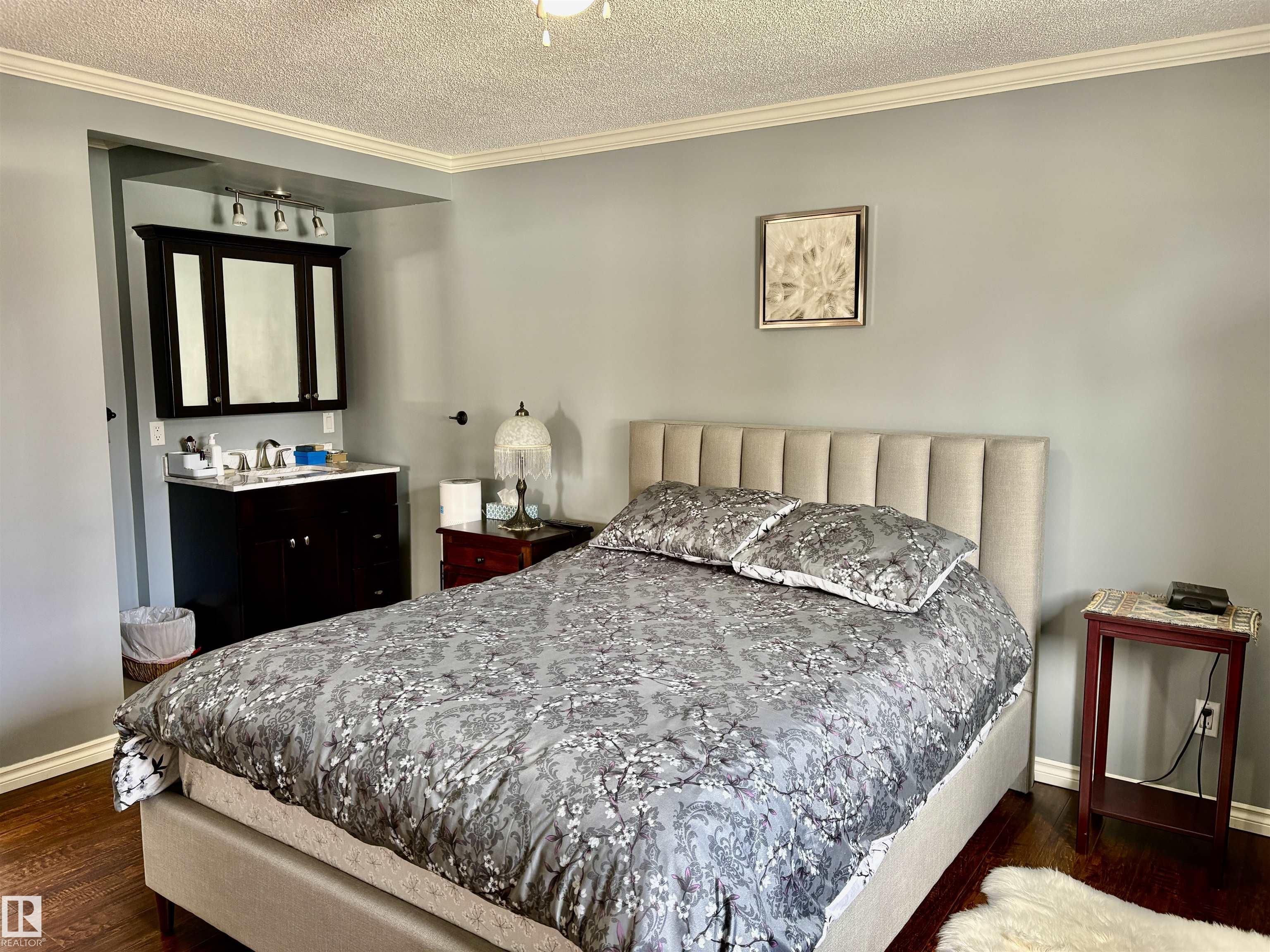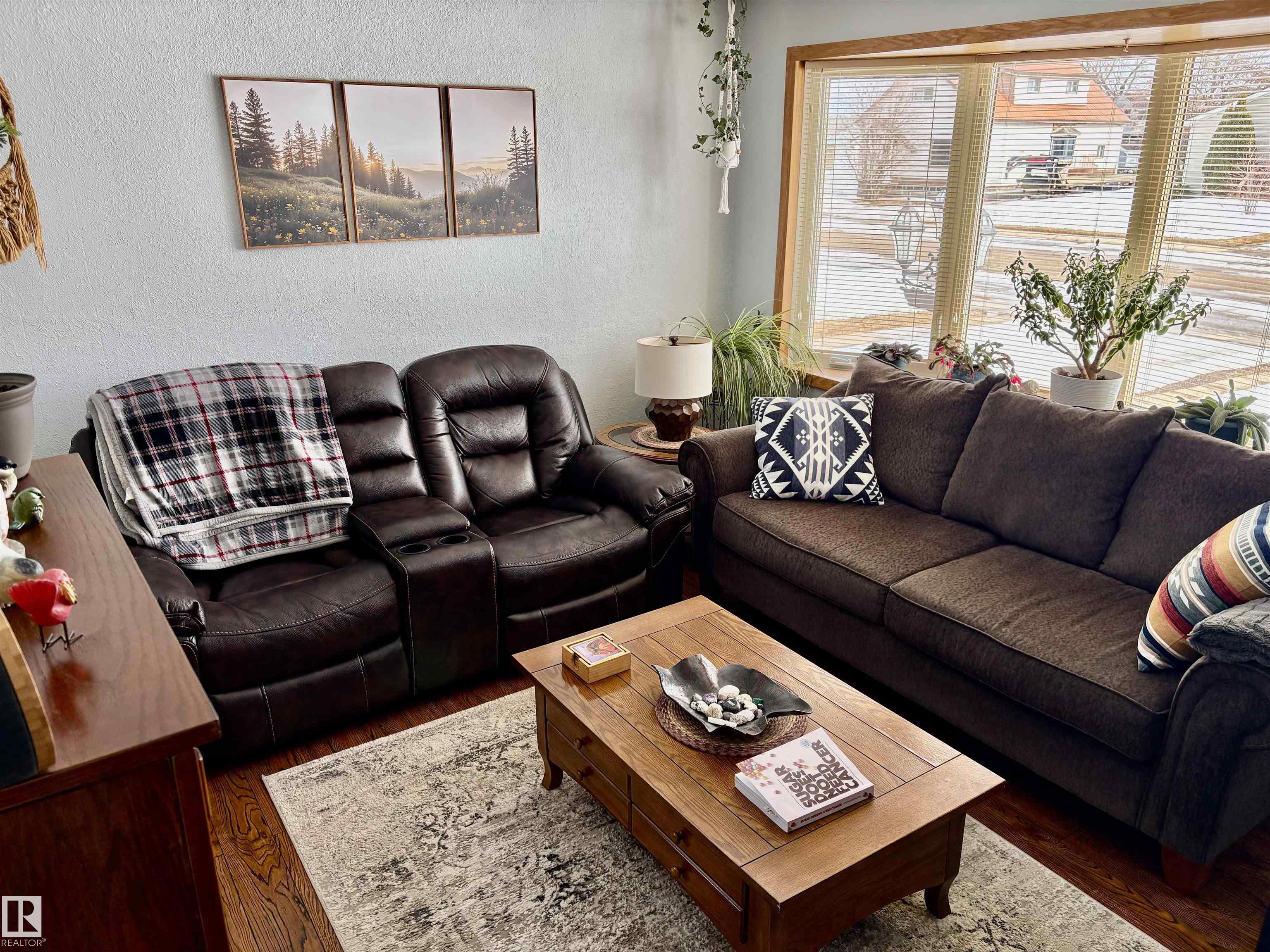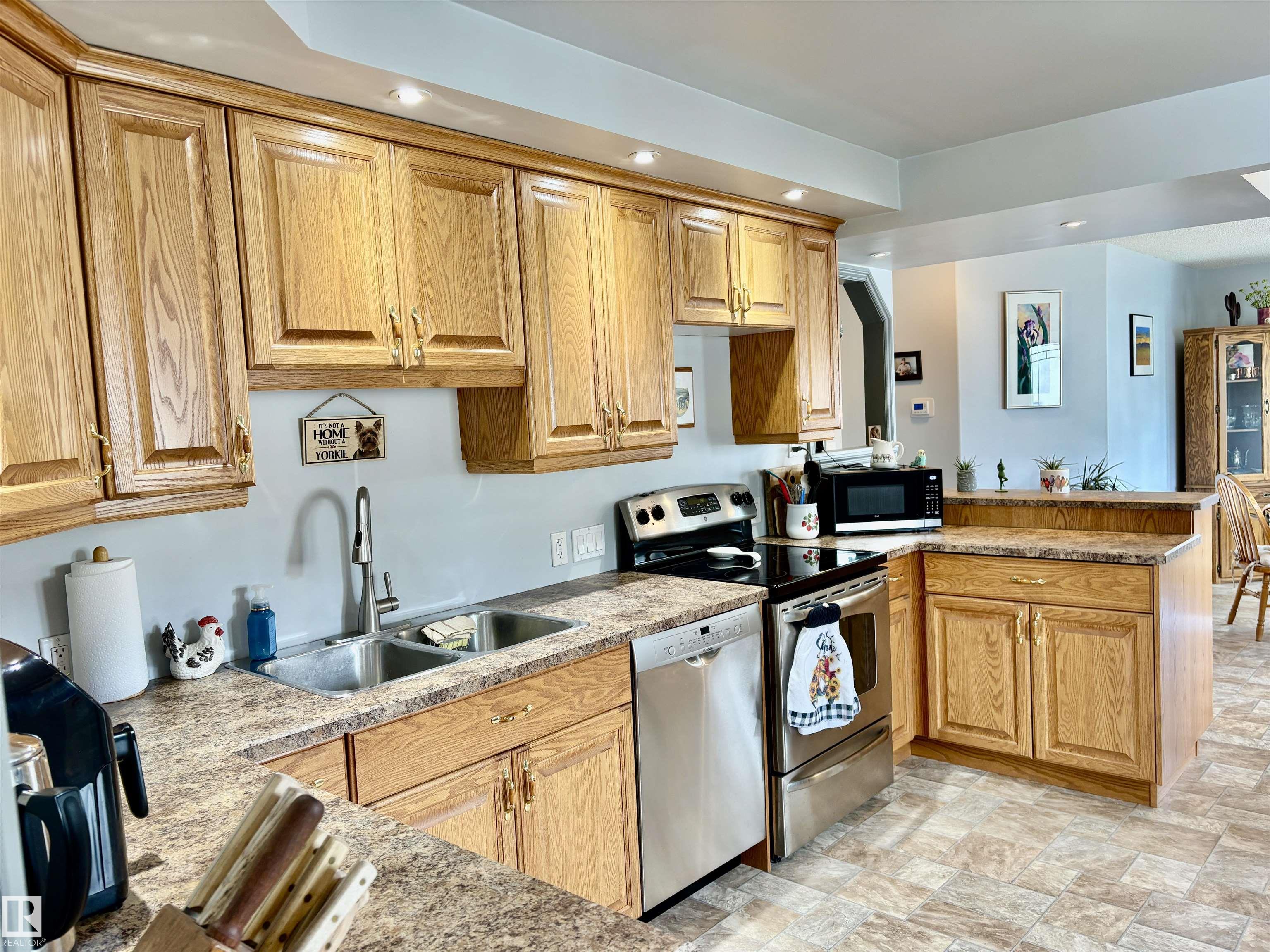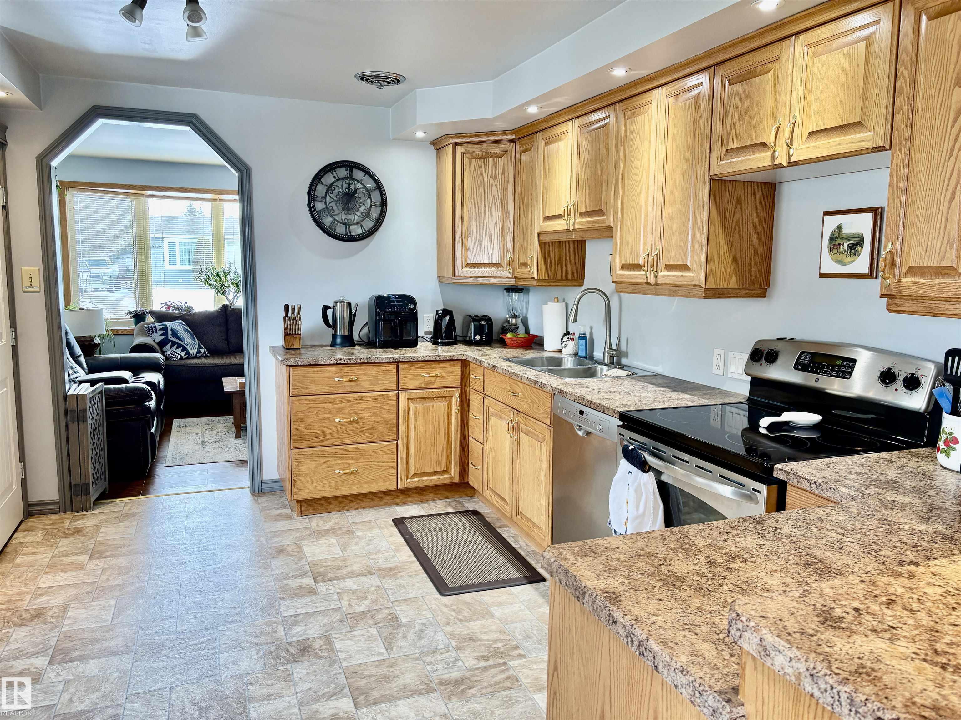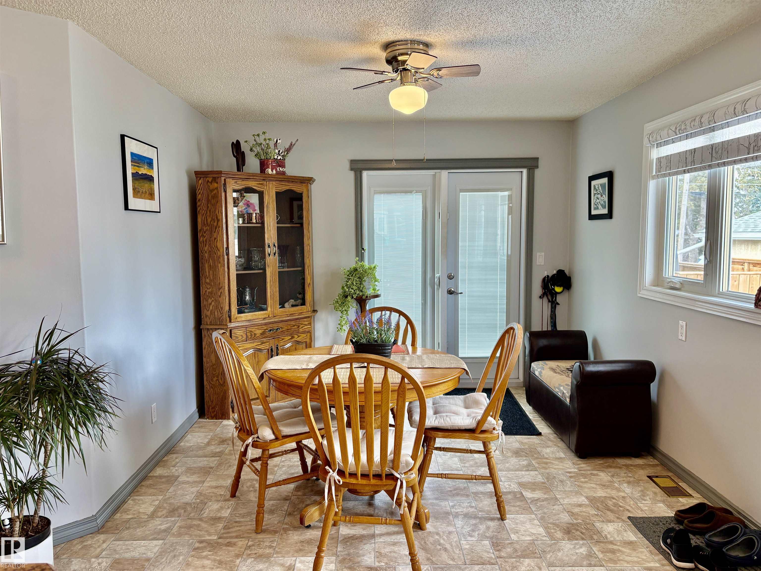 Calling all Seniors or 1st time home buyers... This one is a gem!! Main Floor laundry, 2 bedrooms on main floor with 2 bathrooms with a jetted tub, enormous kitchen with at spacious dining area over looking the deck and gazebo. The living room faces east and is a cozy area for your family. In the basement you will find a rec. room and office area and plenty of storage. Some of the upgrades include: new hot water on demand, newer windows, A/C, new fence, newer furnace, shingles (2025)eaves & soffits. Nothing to do but move in. There is a heated shed just off the back alley, and enough space for a huge motor home or build a garage if you need. Plenty of parking space right beside the home as well. MLS®: E4478470 - Vegreville Bungalow $295,000