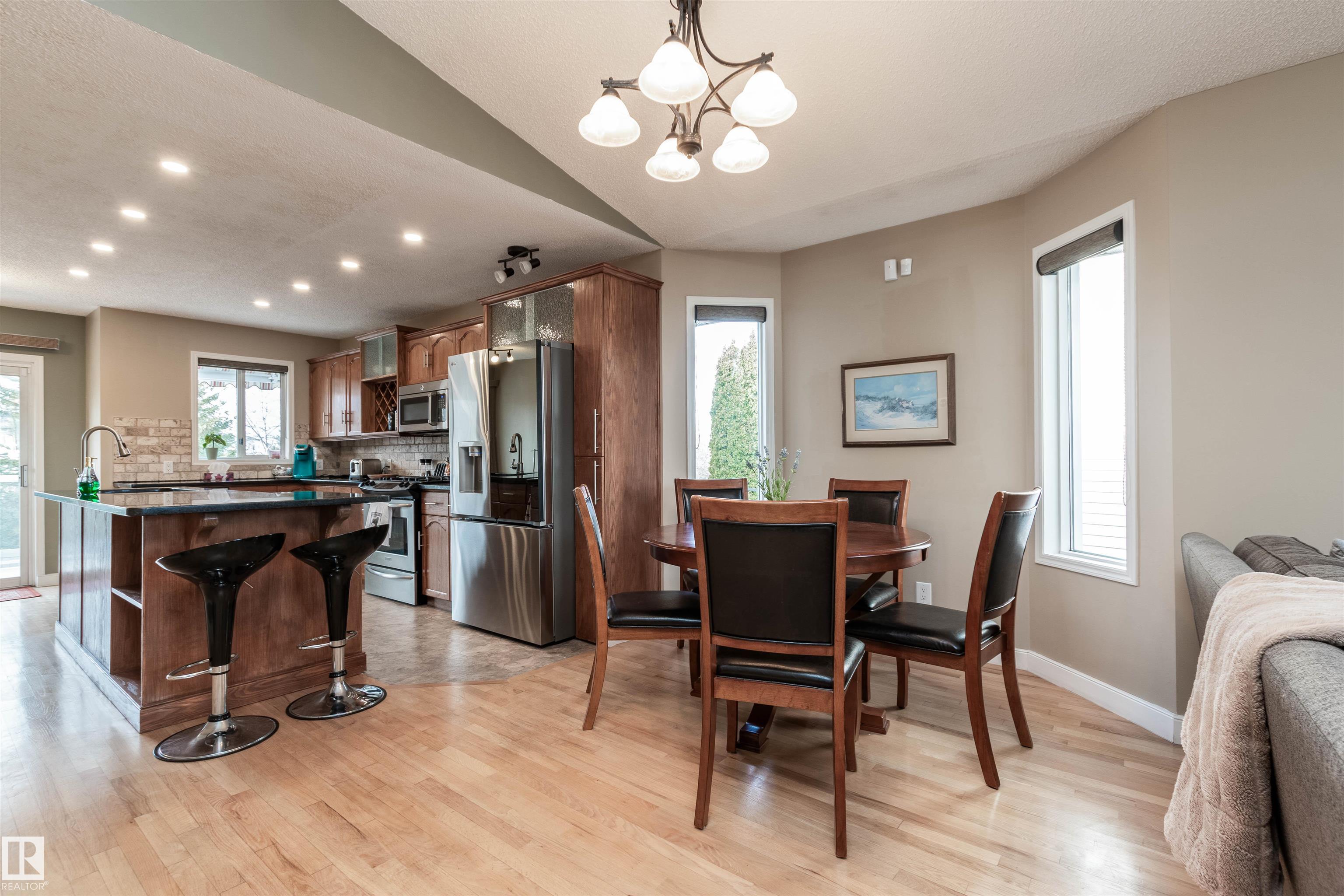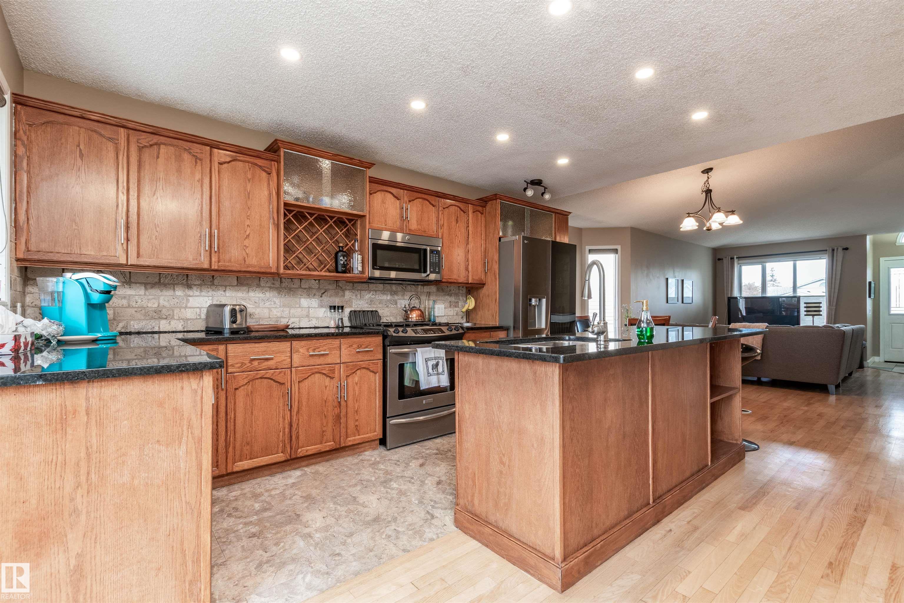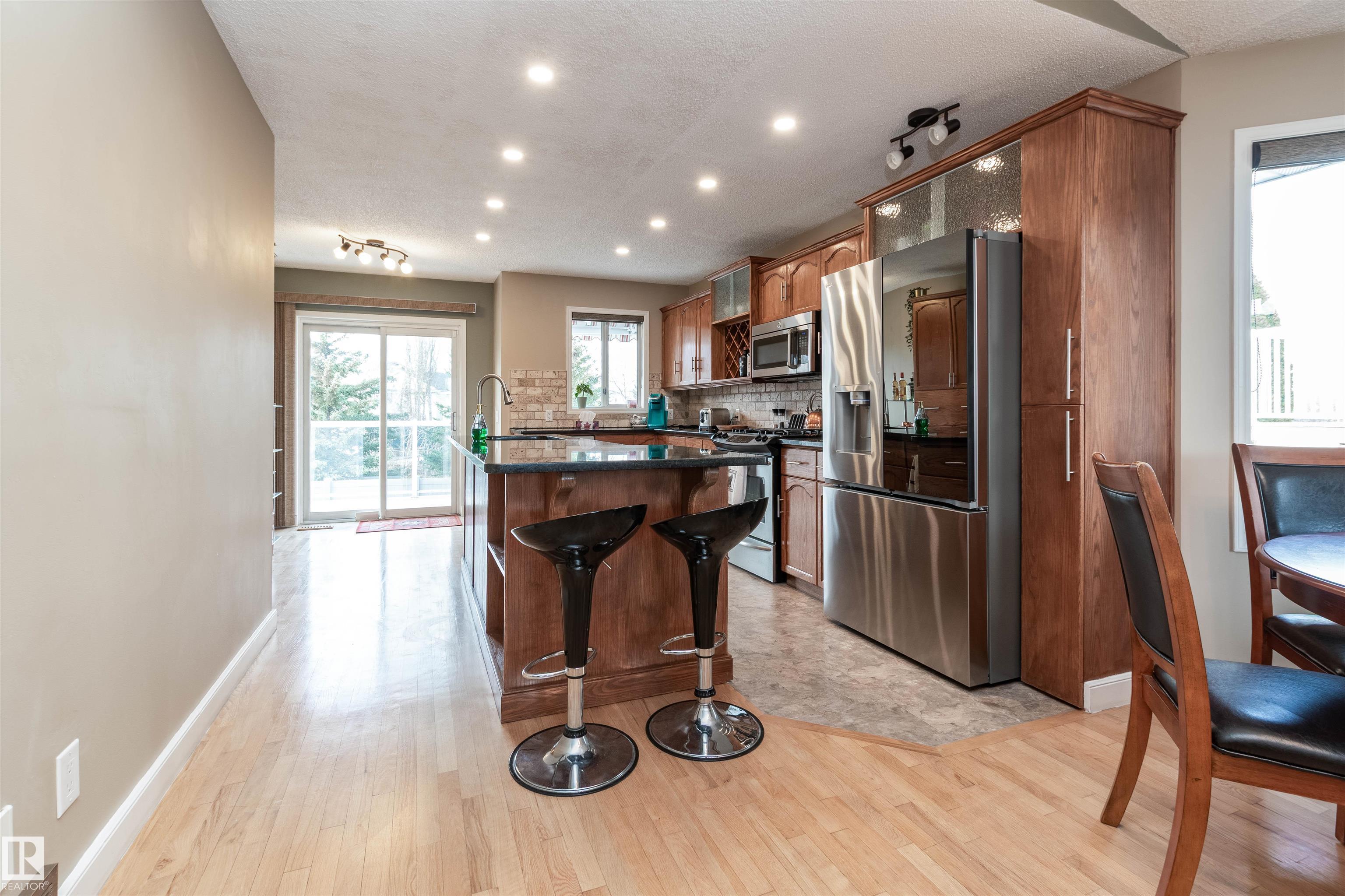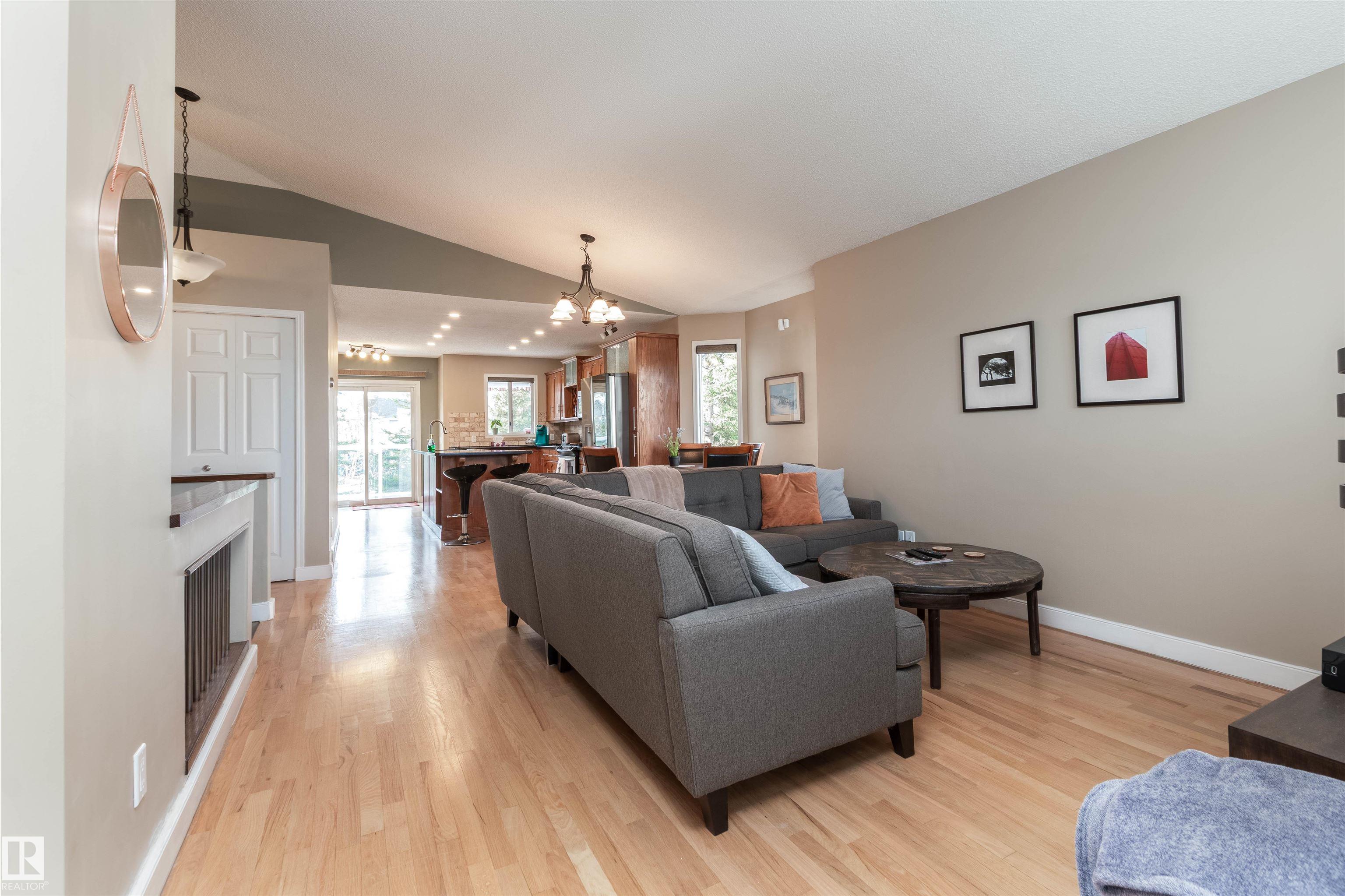 BEAUTIFUL BUNGALOW BACKING ONTO A GREEN SPACE WITH DIRECT ACCESS TO WALKING TRAILS! A rare opportunity in Sherwood Park! Situated on a huge PIE LOT in a treed back setting. Offering over 2000 square feet of total living space including a fully finished basement. Open and spacious front living room with adjacent dining area. Featuring a gorgeous kitchen with hardwood flooring, Granite countertops and stainless steel appliances. Direct access to the two-tiered deck and the beautiful SOUTHWEST FACING BACKYARD! There are 3 bedrooms on the main, laundry area, and a 4 piece bathroom. The Primary Bedroom has its own private 3 piece ensuite and walk-in closet. The basement offers a big family room with gas fireplace, 4th bedroom and a 3 piece bathroom. Newer shingles, central A/C, and a HEATED double attached garage. Great location close to schools, transit, parks and various restaurants and shopping. Won't last! Visit REALTOR© website for more information. MLS®: E4464970 - Davidson Creek Bungalow $581,707