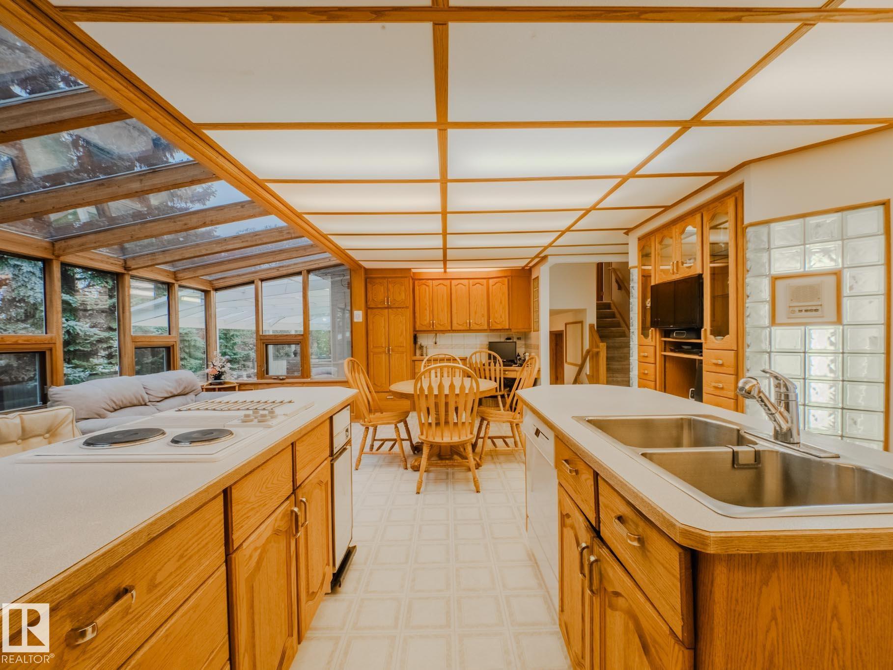 THREE CAR GARAGE... EPIC POOL/BACK YARD... END OF A CUL-DE-SAC... NEVER BEEN LISTED... MINT CONDITION (BIT OF A TIME MACHINE)... THE GLASS ROOM OVERLOOKING THE YARD IS BEYOND AWESOME... ~!WELCOME HOME!~ From the minute you drive up... this is it! Finished on all 4 levels -- classic foyer leads up into the family room with gas fireplace. The heart of the home sits at the back with a big kitchen and that glass room you just have to see! Upstairs was converted from 3 bedrooms to 2 -- large office, 4-piece bathroom, and a primary suite with an ensuite that was ahead of its time. The third level is straight out of Mad Men -- stone fireplace, cool retro bar, and access to the yard. I can't describe it... you just have to see it (well, okay -- pool, huge trees, private, and the covered patio is off-the-charts cool). The 4th level has another bedroom, craft room, bathroom, and bar ;) On the right is a large double garage; left side is a heated single/workshop/extra parking, etc. Custom everything around here! MLS®: E4464160 - Glen Allan 4 Level Split $649,702