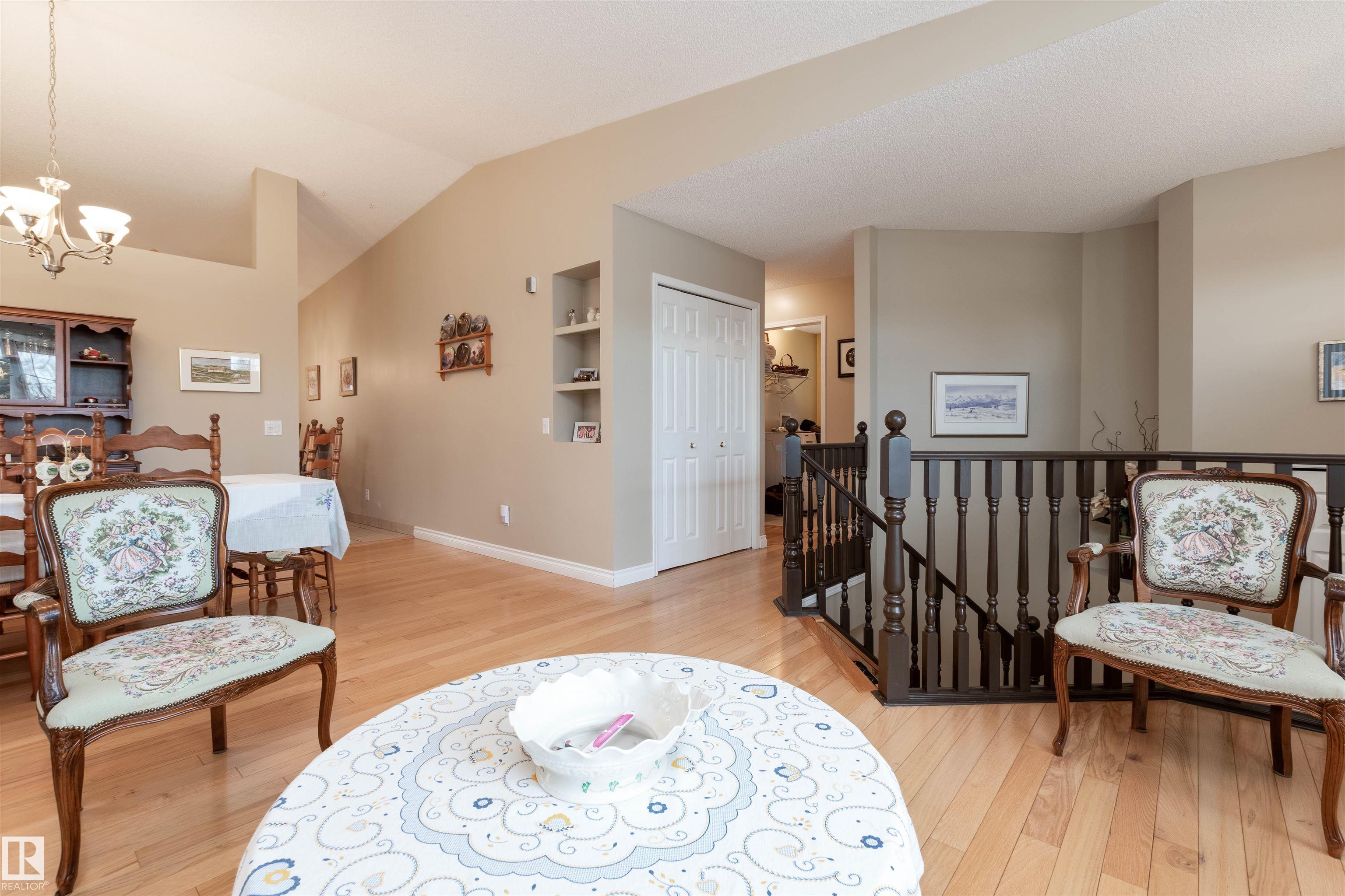 WELCOME to 242 Rainbow Crescent! This lovely custom-built bi-level offers a wonderful open floor plan with vaulted ceilings, hardwood floors, 4 bedrooms and 3 bathrooms. Spacious living room with an open dining area. Generous and bright eat-in kitchen with all appliances and plenty of room for a kitchen table. Enjoy the sunny 3 SEASON SUNROOM! Convenient main floor laundry and a 4 piece bathroom. The Primary Bedroom features a BEAUTIFULLY RENOVATED 3 piece ensuite and walk-in closet. The basement boasts a large family room with cozy gas fireplace, 2 bedrooms, 3 piece bathroom, utility room with workshop area and storage space. HEATED double attached garage. The shingles and hot water tank were replaced approximately 7 years ago. Lovely SOUTH-FACING backyard! Excellent location, close to parks, trails and shopping. See it today! Visit REALTOR© website for more information. MLS®: E4471963 - Regency Park (Sherwood Park) Bi-Level $499,707