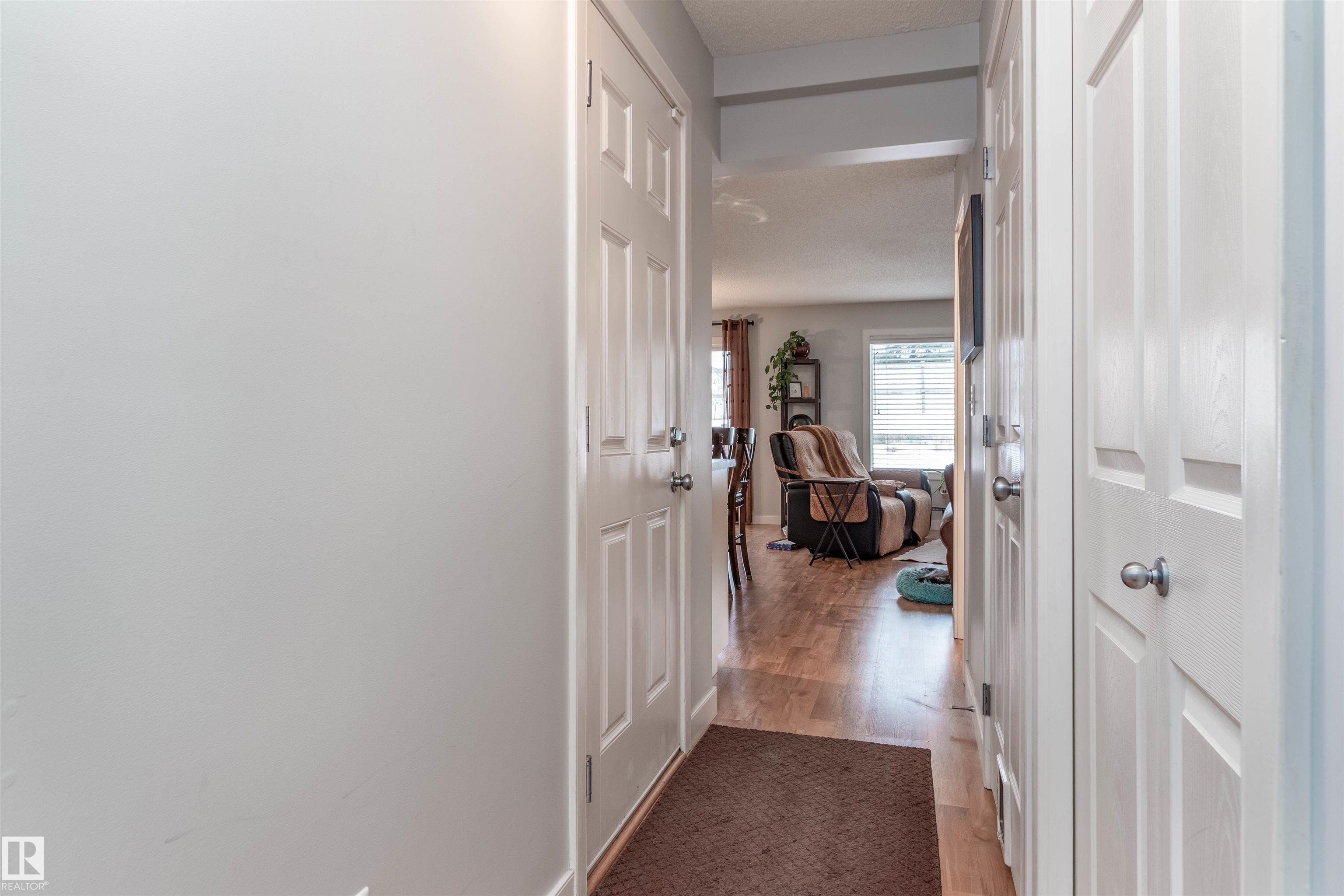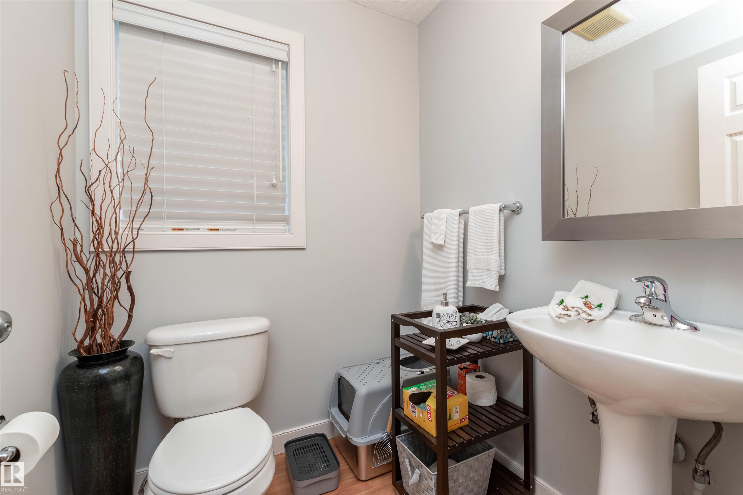 OUTSTANDING VALUE! This lovely half duplex in Summerwood is perfect for a first-time home buyer or investor! Excellent floor plan featuring a bright and cheery eat-in kitchen with island, appliances, rolling drawers in cabinets, pantry, plus dining area. Adjacent living room with laminate flooring and gas fireplace. Step out onto your deck and enjoy the sunny SOUTH FACING BACKYARD! There are lots of perennials too! Main floor powder room. Upstairs is a bonus room area/office space and 2 Primary Bedrooms with beautiful 4 piece ensuites! NEWER CENTRAL AIR-CONDITIONING, NEWER HWT, R/O SYSTEM, VACUUM SYSTEM AND WATER SOFTENER. Single attached drywalled garage and a cute front deck. Super location close to parks, trails, shopping, restaurants, and more! Easy access to major highways. An affordable home in a great community! See it today! Visit REALTOR© website for more information. MLS®: E4470809 - Summerwood 2 Storey $378,500